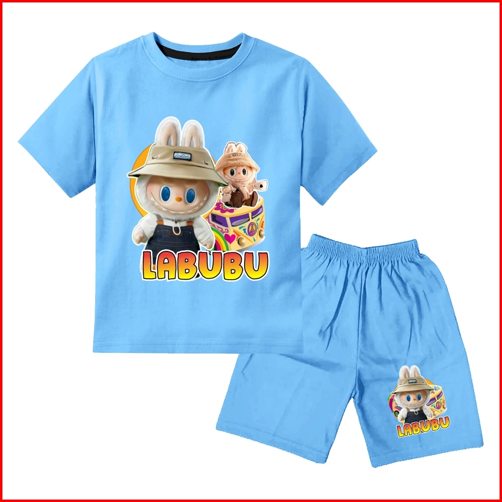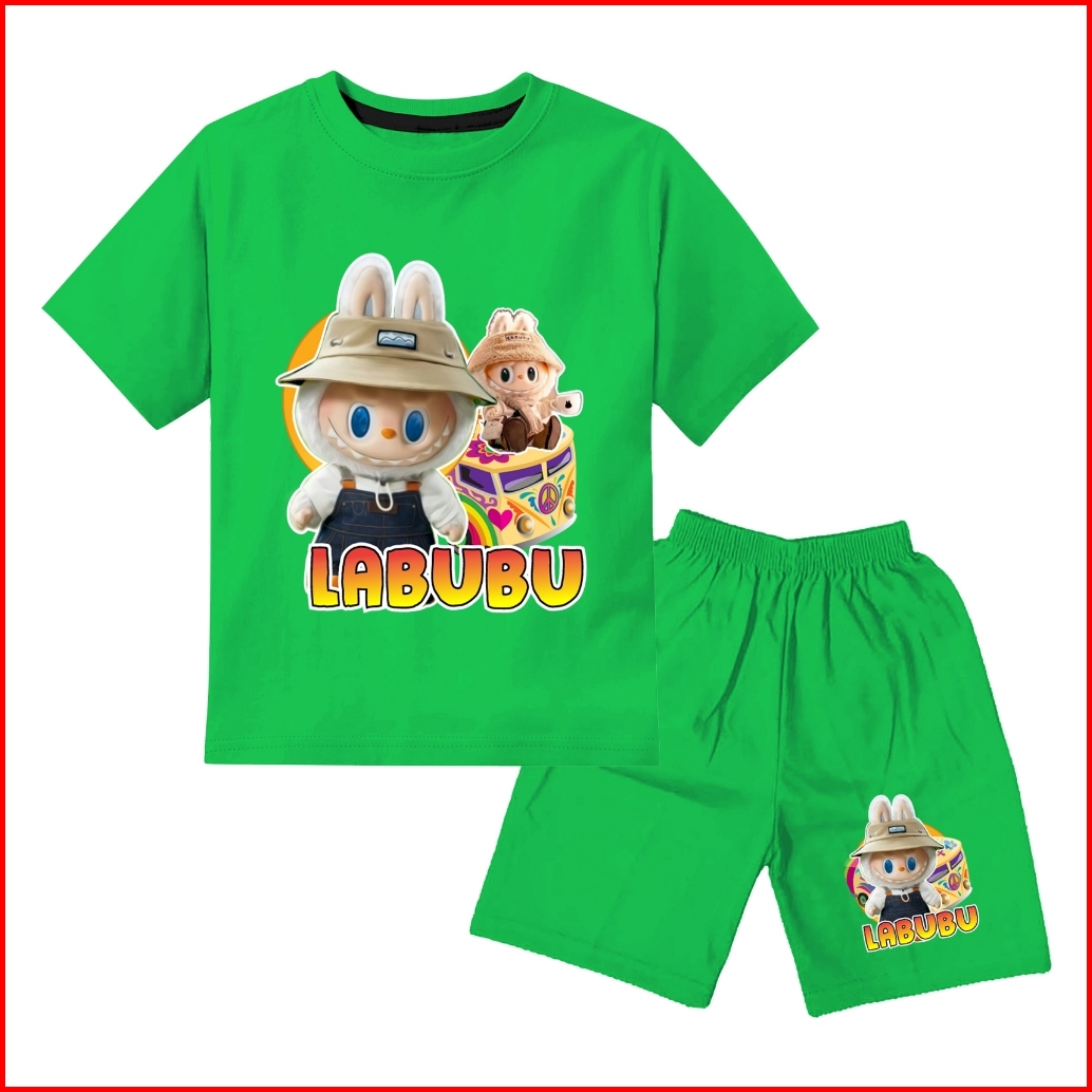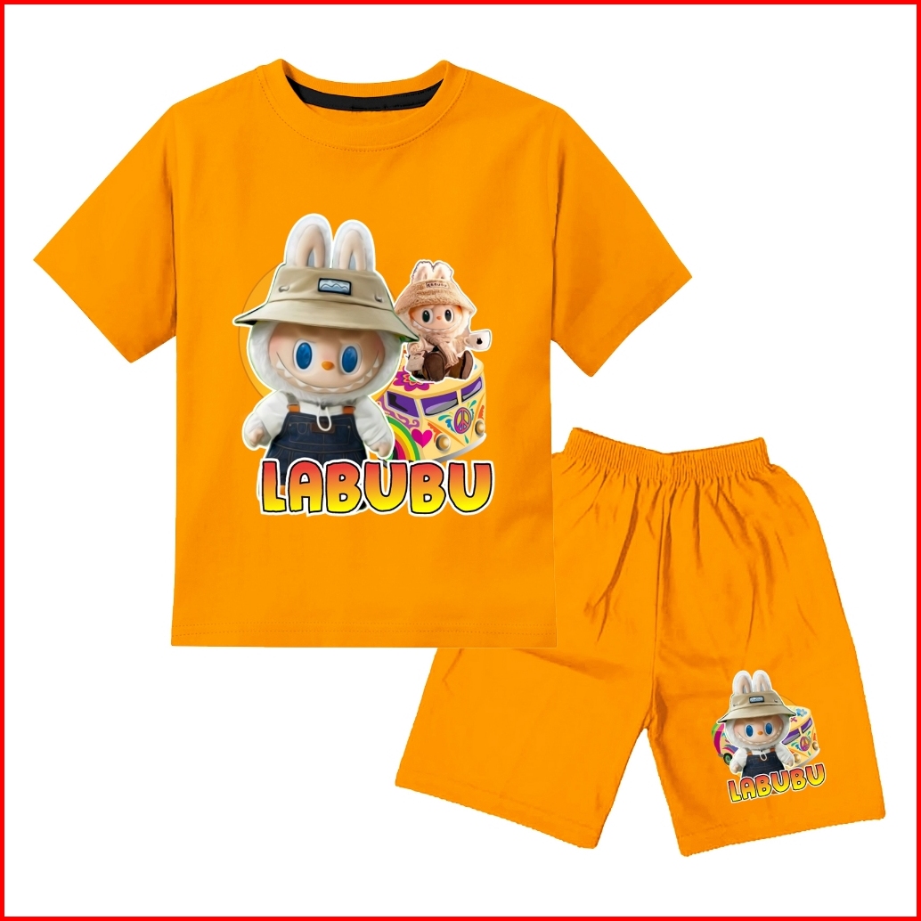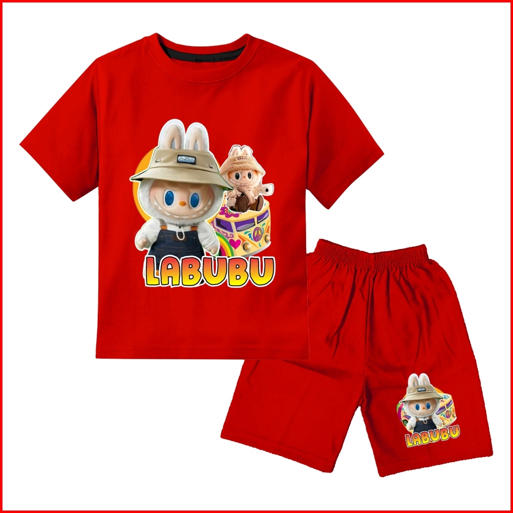 Baju Set Stelan Setelan Kaos Anak Laki Laki Murah Motif Labubu The Monster Umur 1-10 Tahun Bahan Katun Premium Sablon Dt