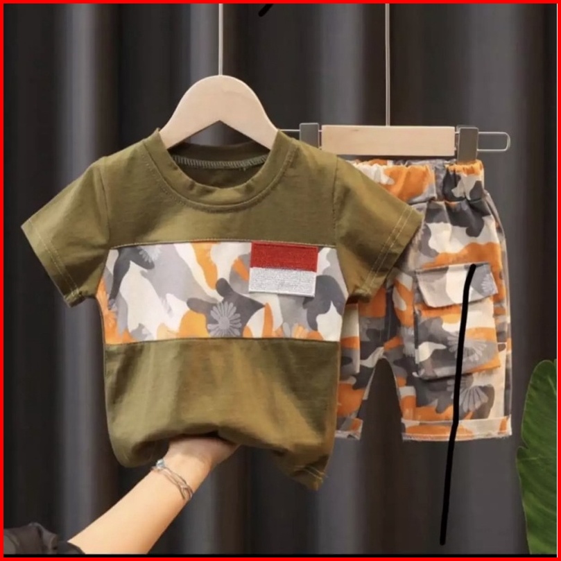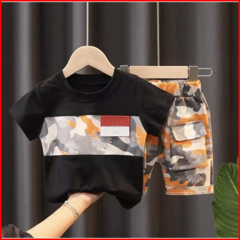 Kaos Anak Setelan Baju Dan Celana Anak Bendera Indonesia 1-5 Tahun