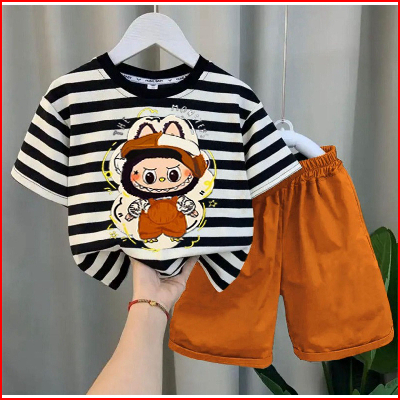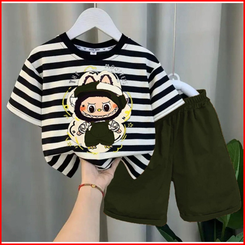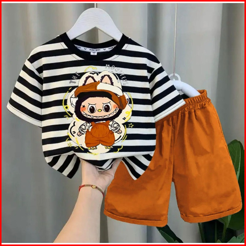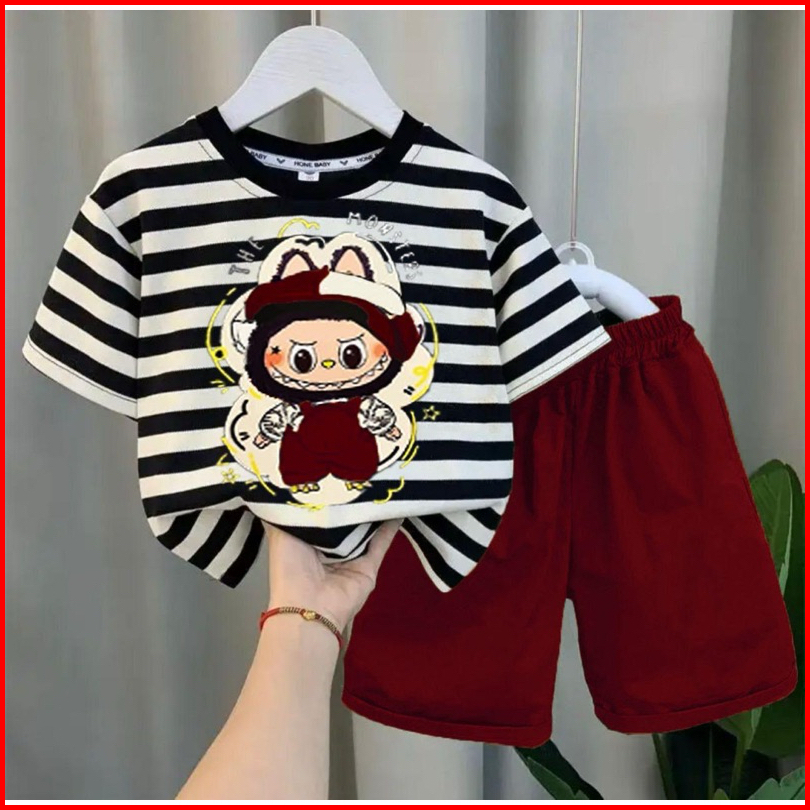 Kaos Anak Dan Celana Pendek Anak Motif Salur Setelan Anak Labubu 1-5 Tahun Harga Grosir Ardan Baju Anak