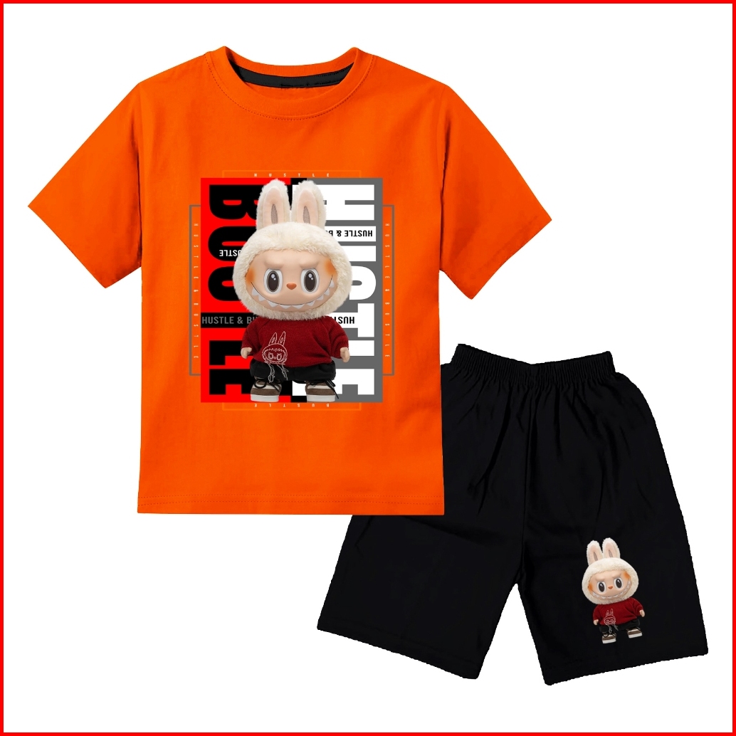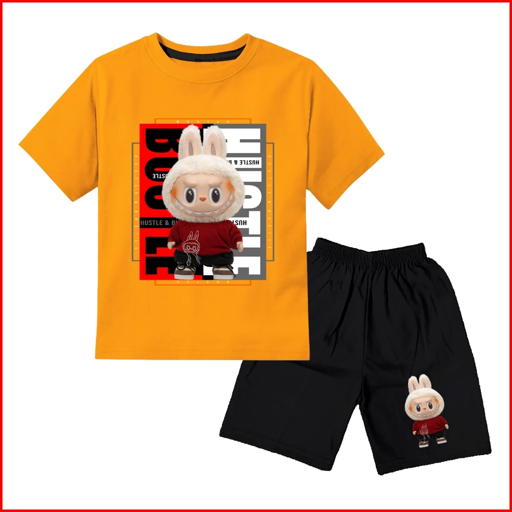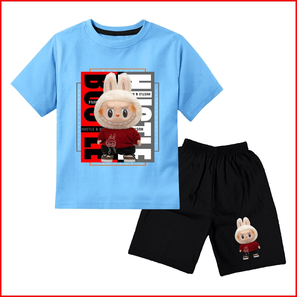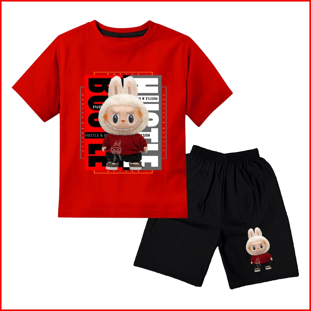 Baju Set Stelan Setelan Kaos Anak Laki Laki Murah Motif Labubu Viral Pop Mart The Monster Umur 1-10 Tahun Bahan Katun Pr