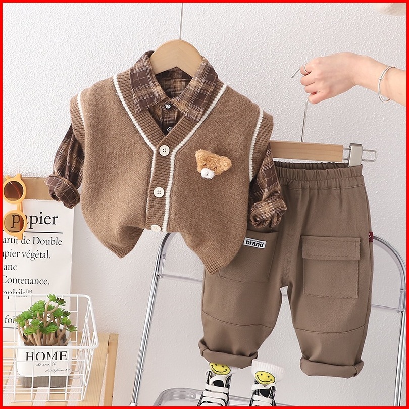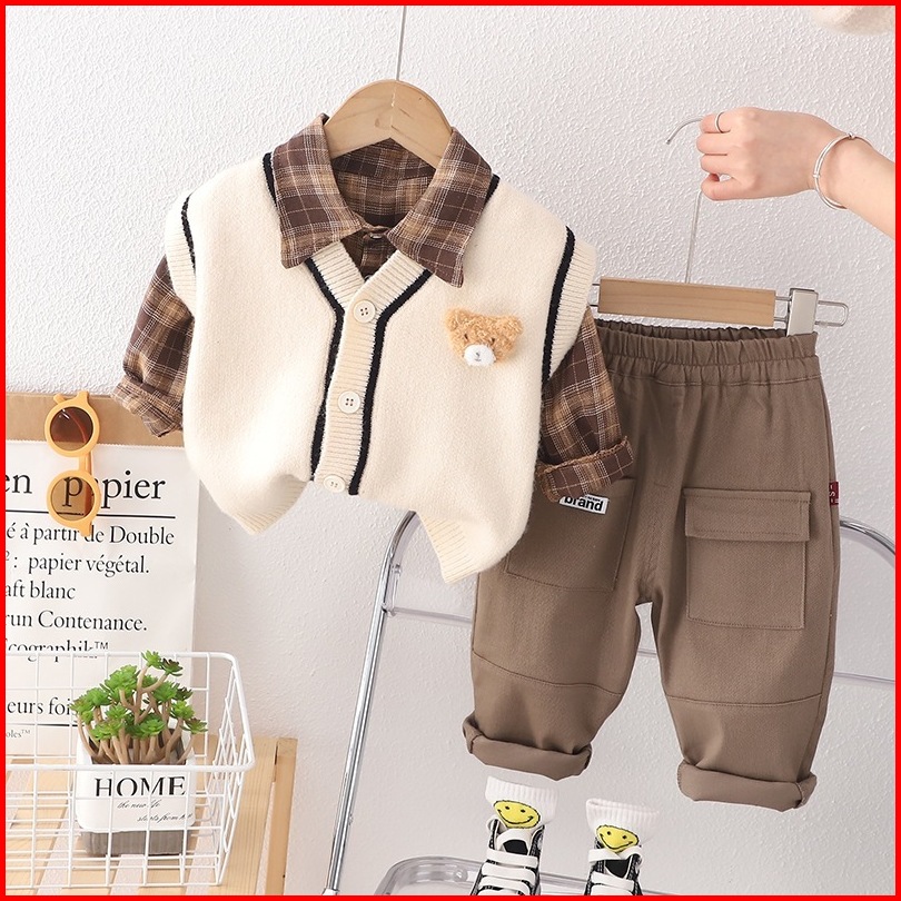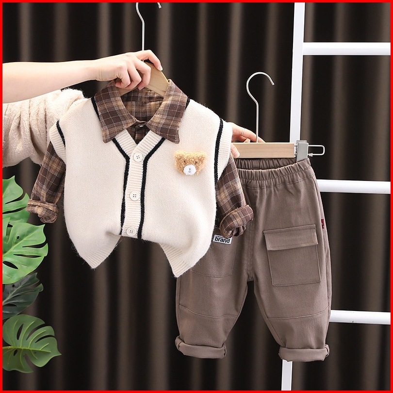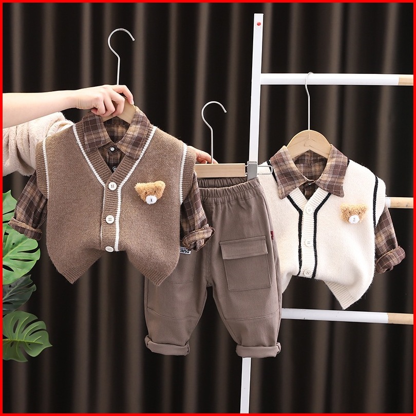 Promo 9.9 Happyoliver Set Stanley Ebv Setelan 3in1 Kemeja Bayi Anak Laki-laki Lengan Panjang Berkualitas