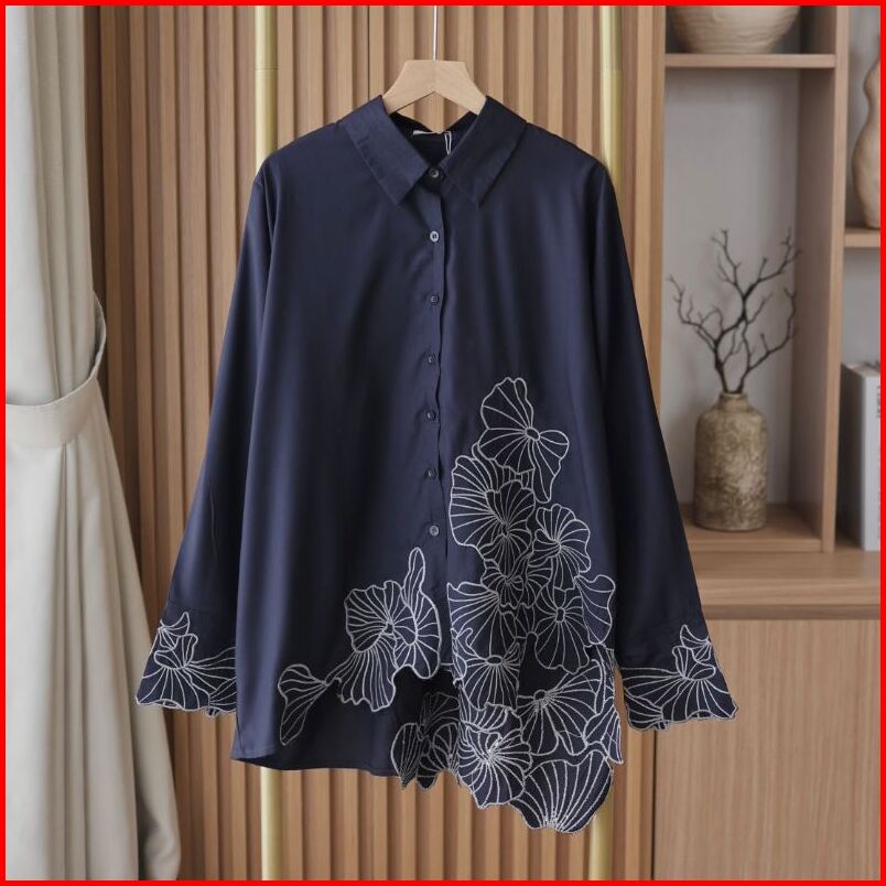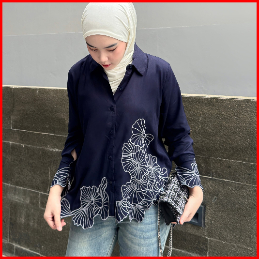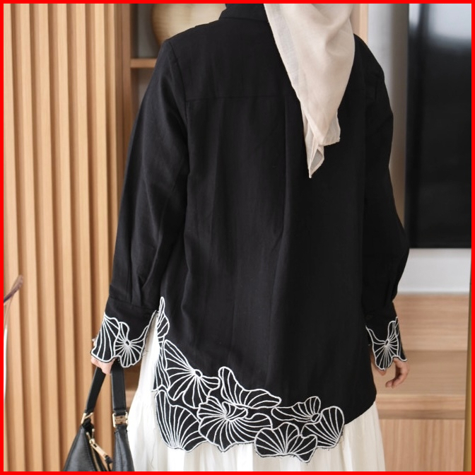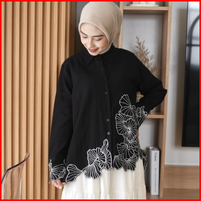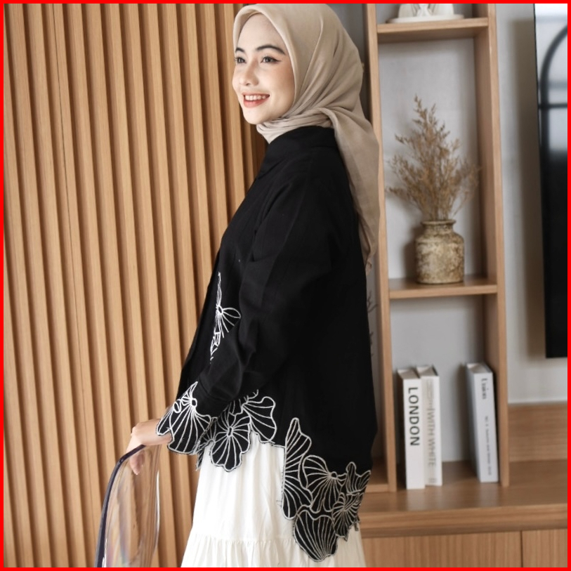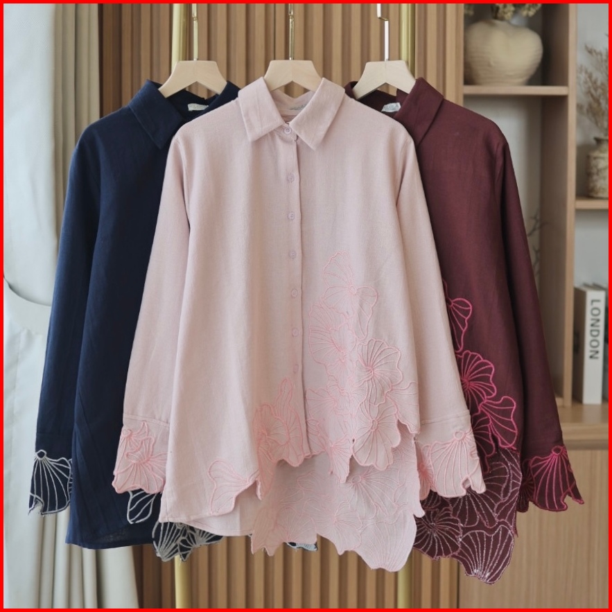 Maira Blouse Floral Embroidery Katun Twill Linen