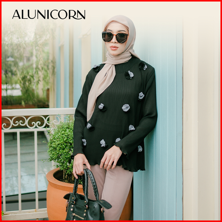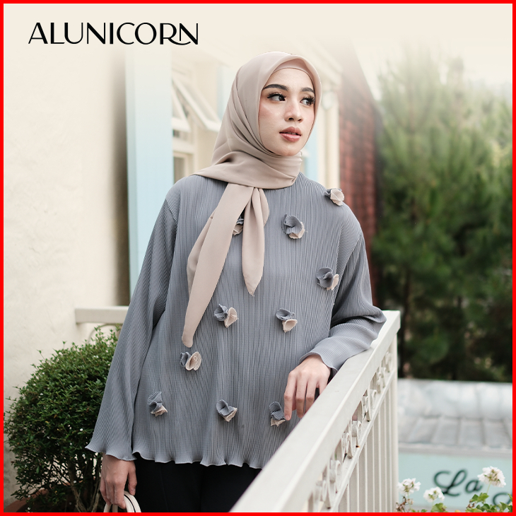Alunicorn - Delle Series - Jean Blouse - Atasan Blus Wanita Motif Bunga