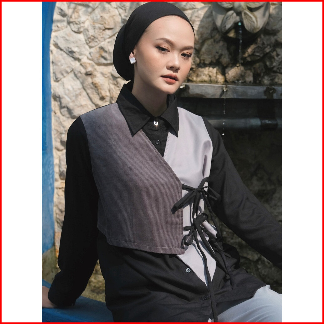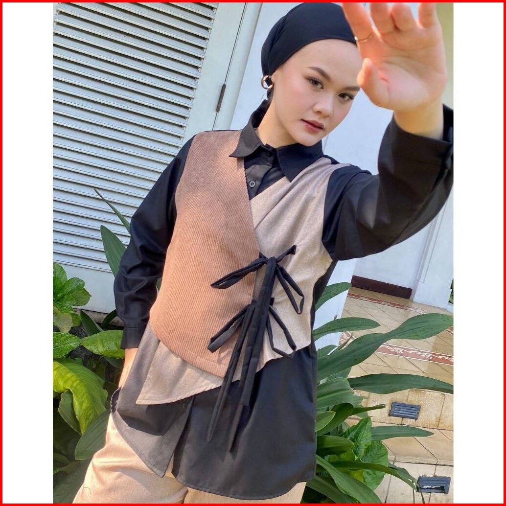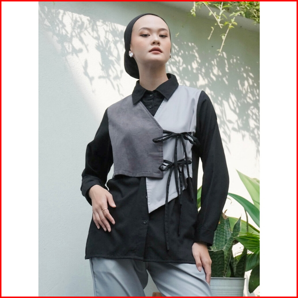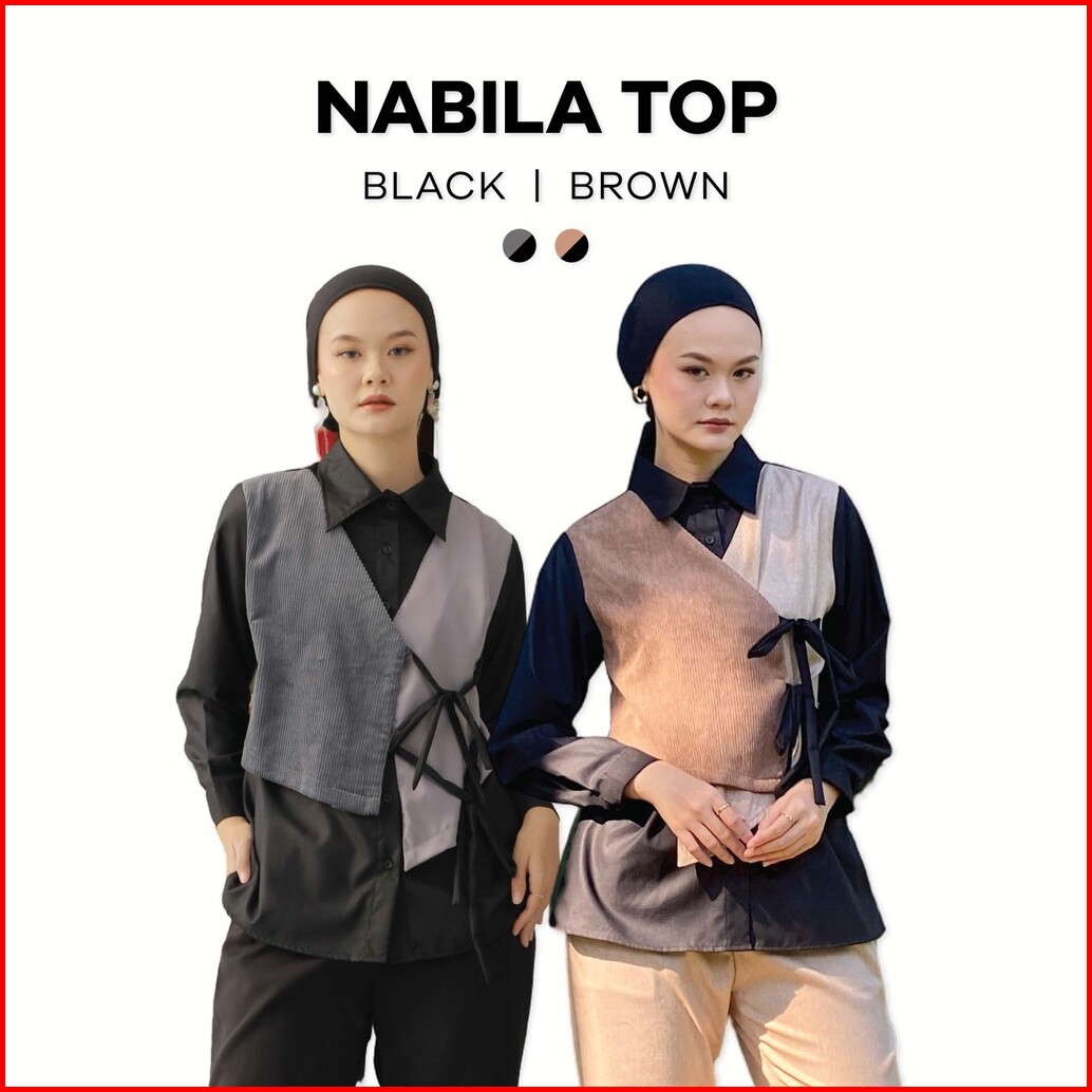 Dya Id - Atasan Kemeja Katun Wanita Nabila Black And Brown L-3xl