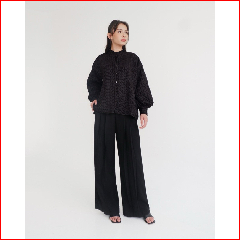 Alaia Top Atasan Wanita Casual Puffy Sleeves Blouse Lengan Balon Textured Fabric Gracias Label