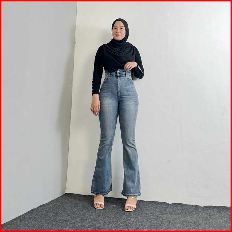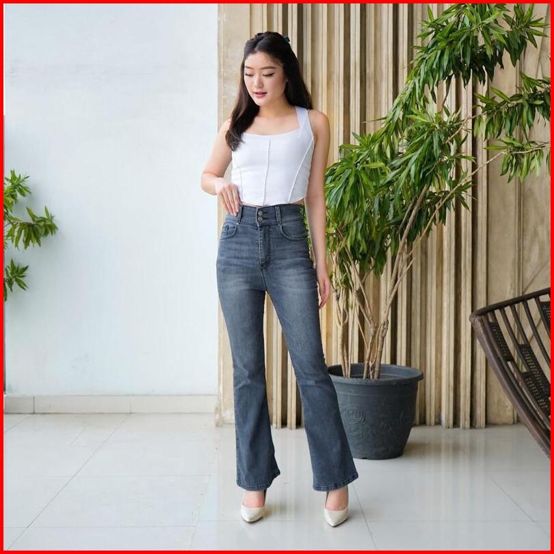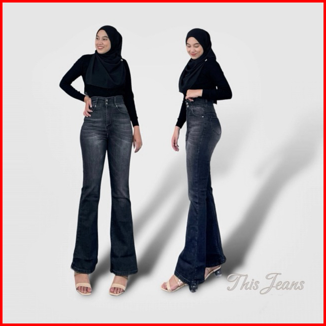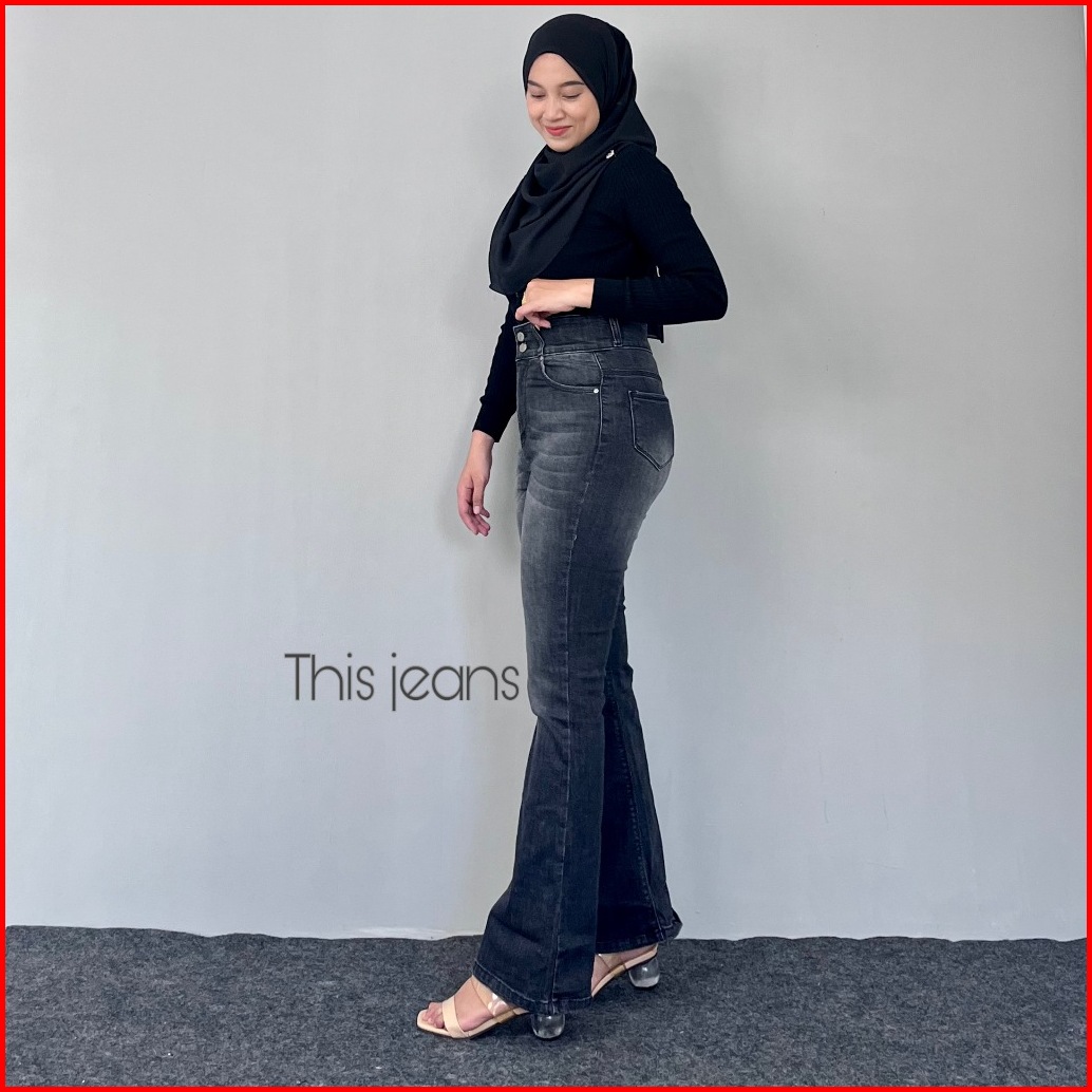 Thisjeans - Ultra High Waist Axel Celana Cutbray Wanita Stretch Premium 27-34 Jeans Denim