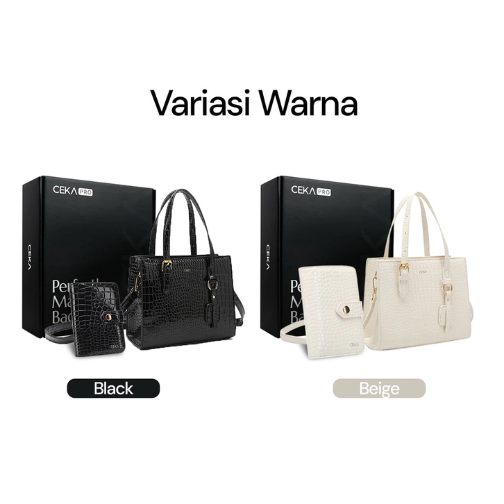 [FREE BOX] CEKA PRO Tas Wanita Fara Gift Set 2In1 Kulit Croco Resleting Kekinian Import Mewah