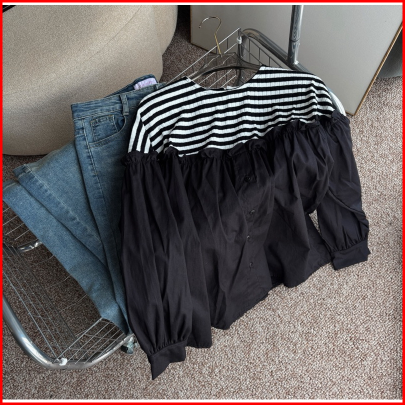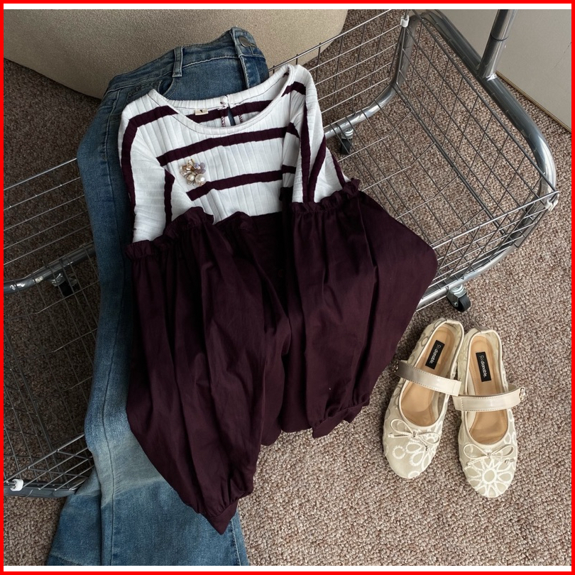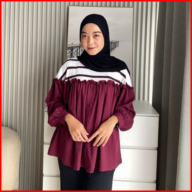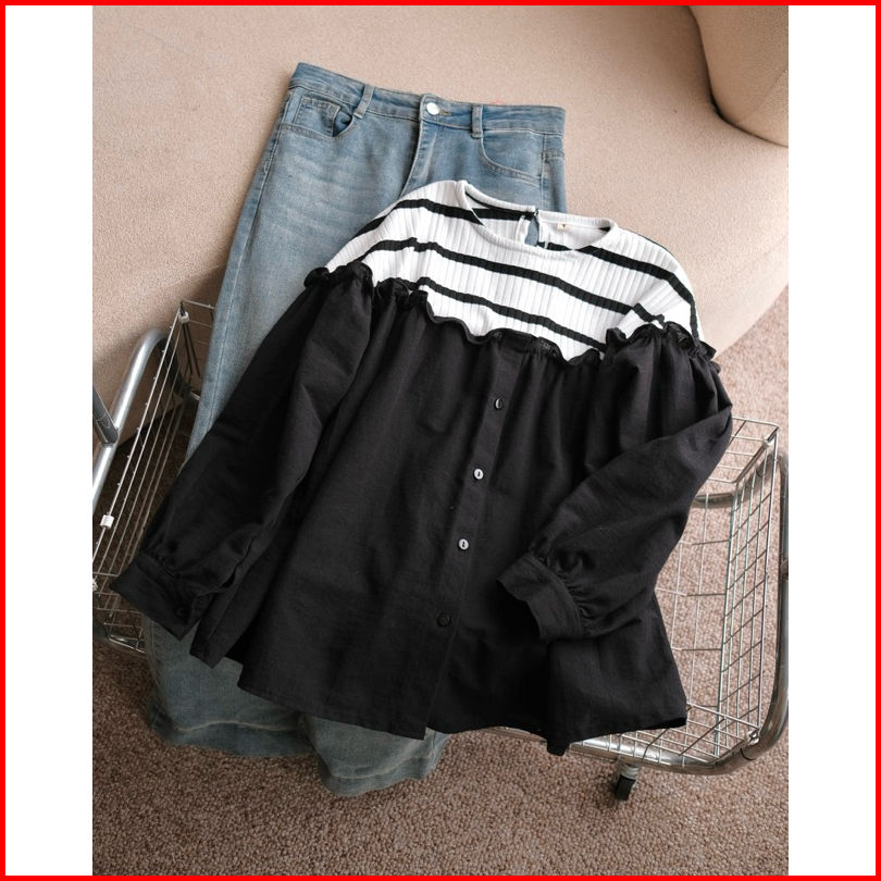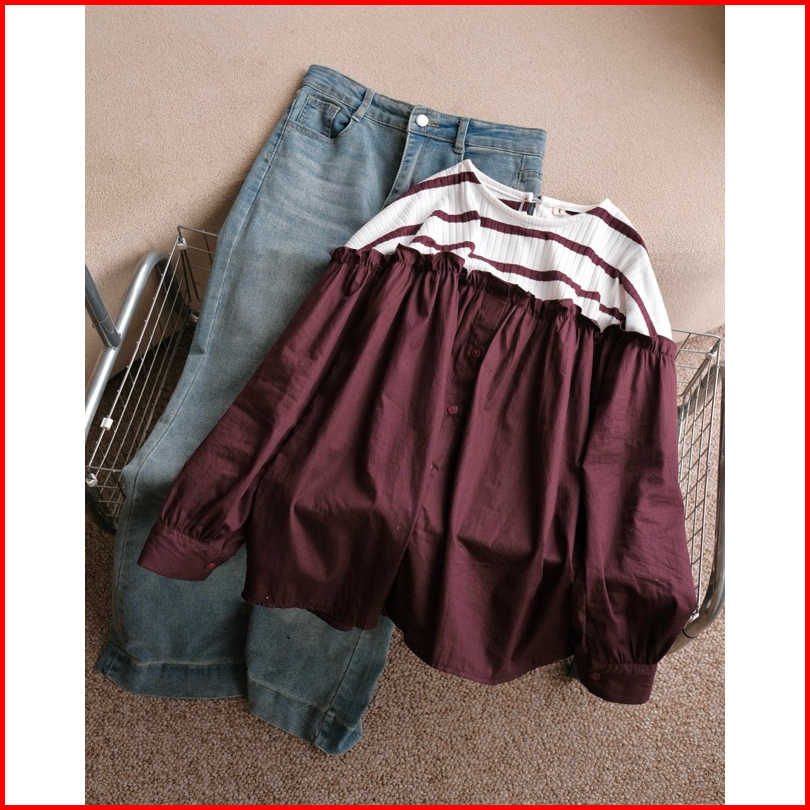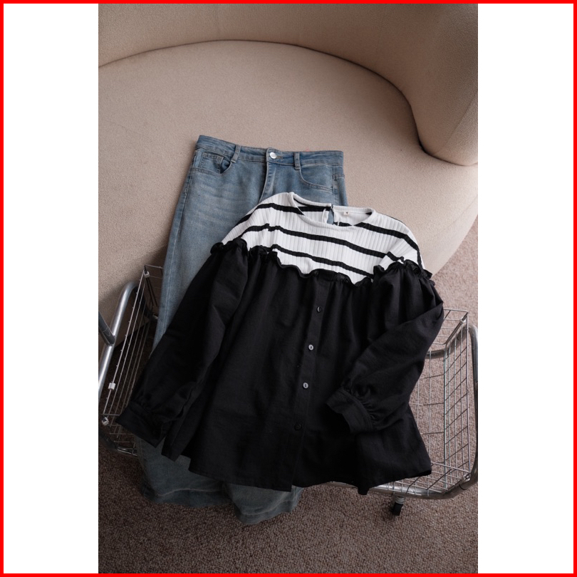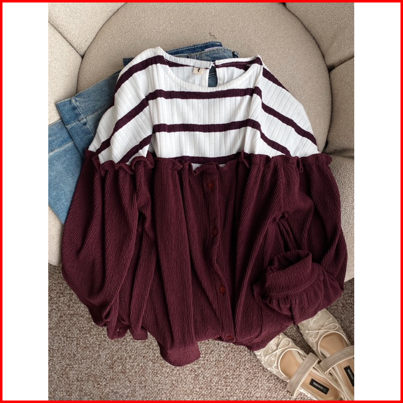 Floral Id - Blouse Katun Mix Knit Talia Stripe Model Sabrina Tangan Panjang