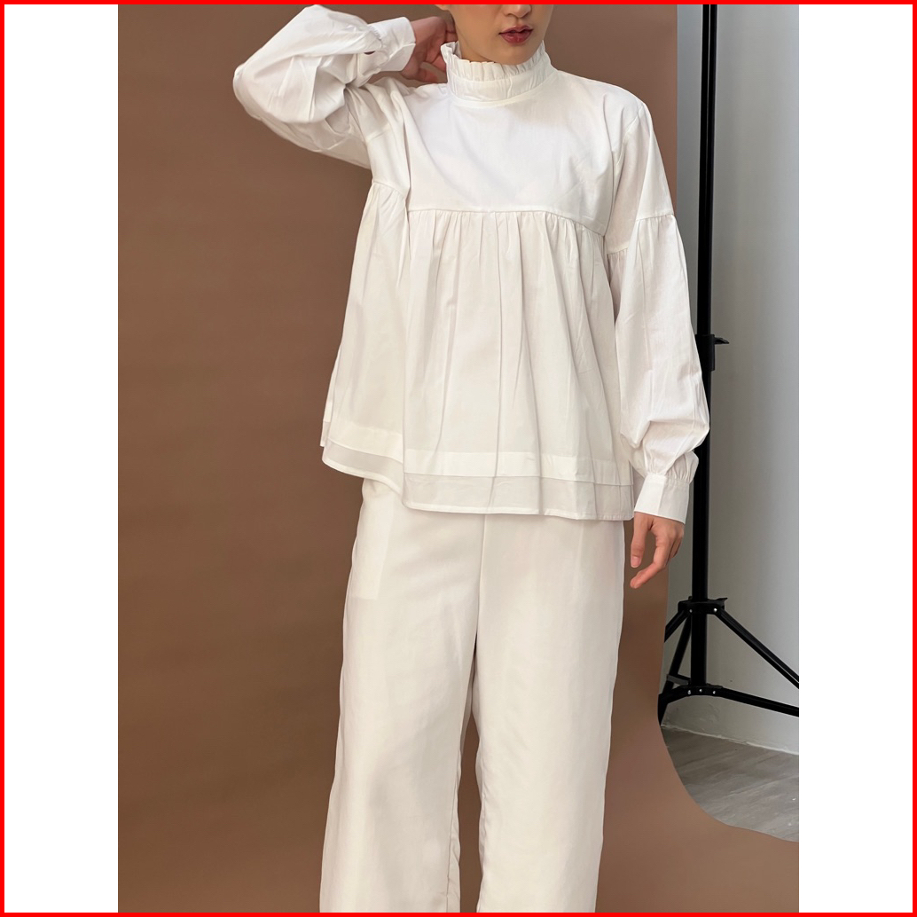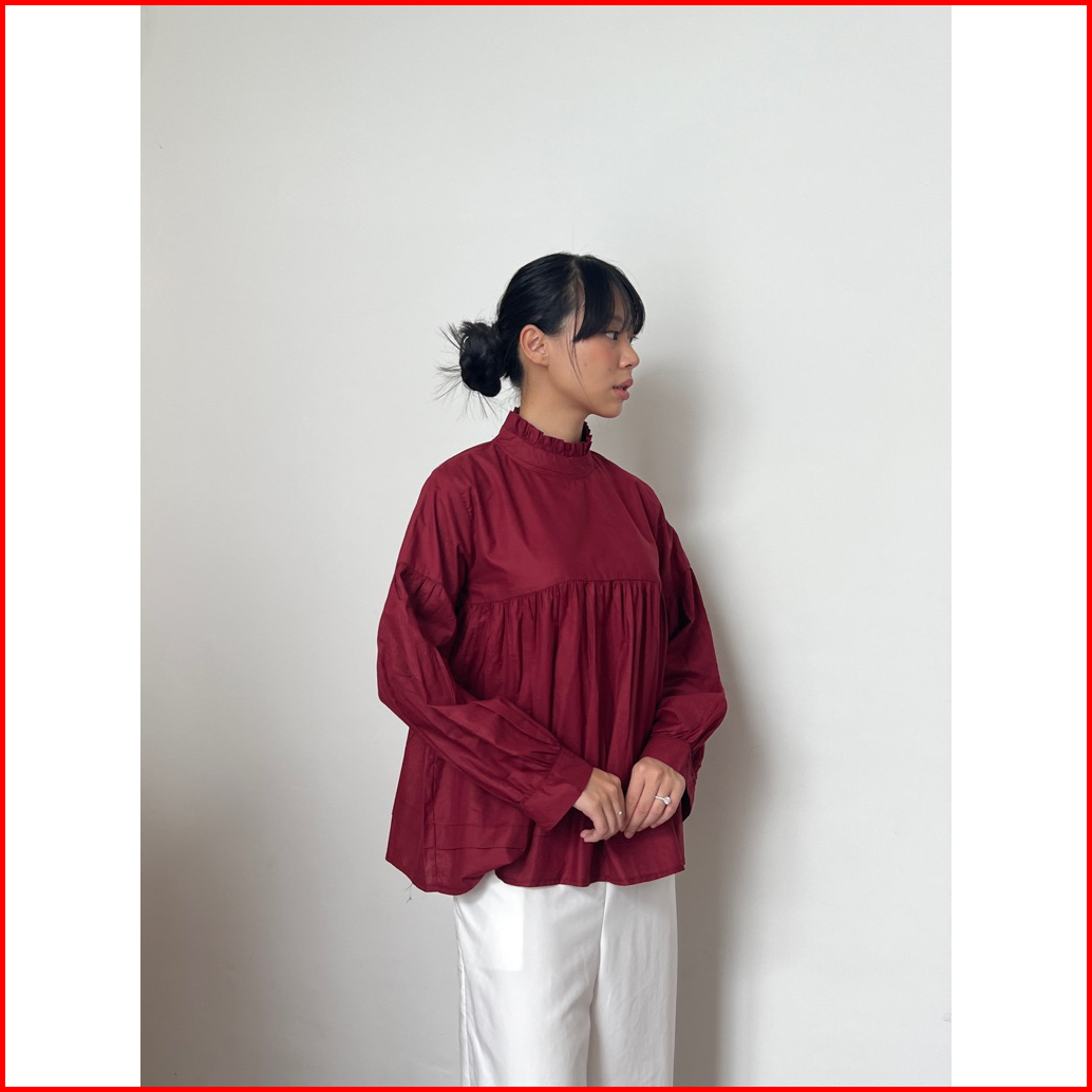 Poro Naka - Amara Blouse Atasan Wanita Longsleeve Babydoll Baju Katun Kantor Lengan Panjang