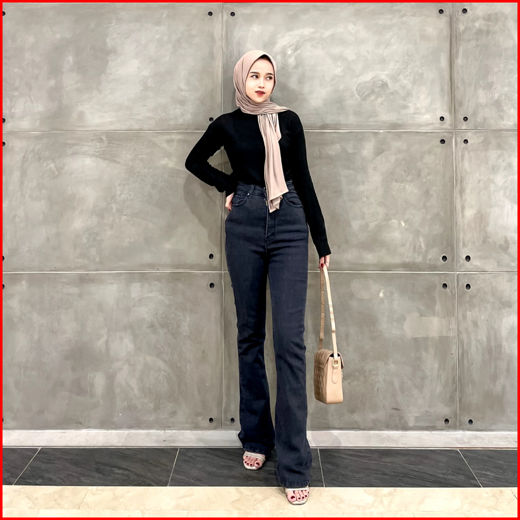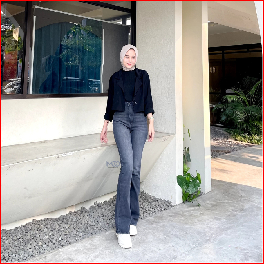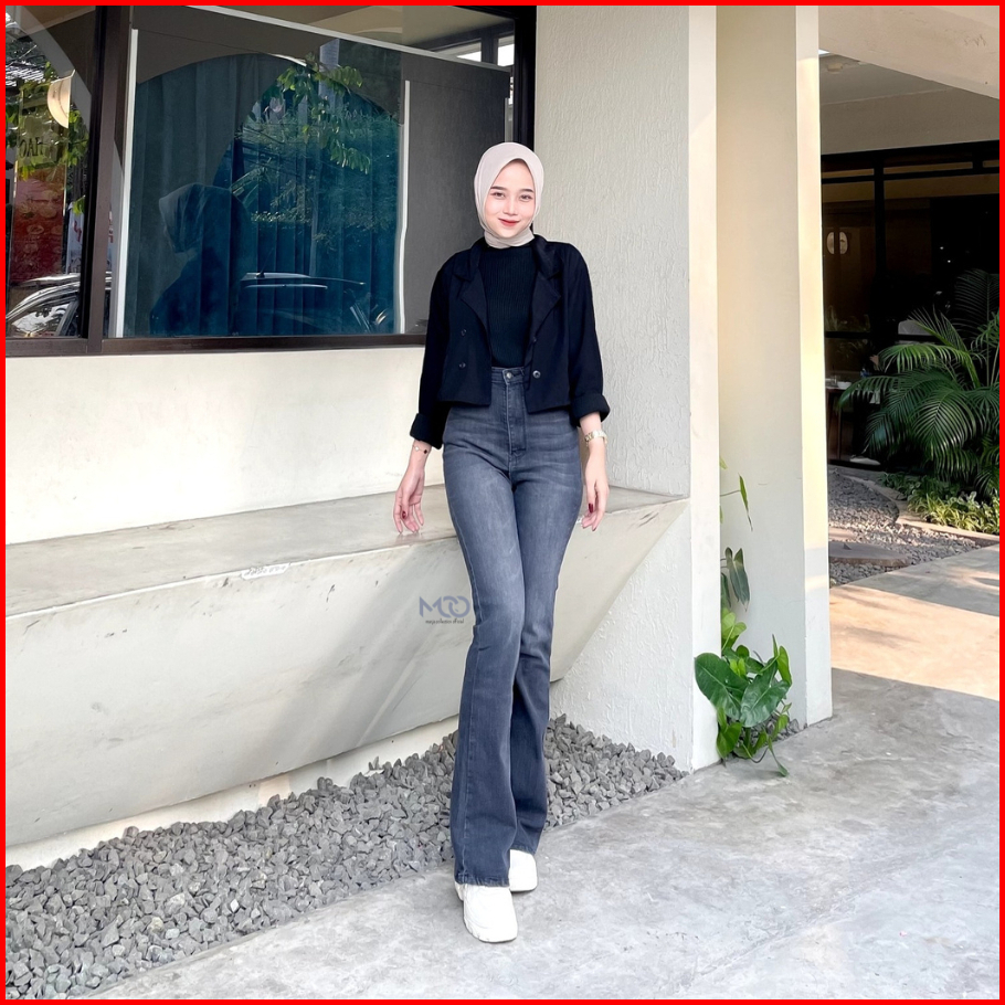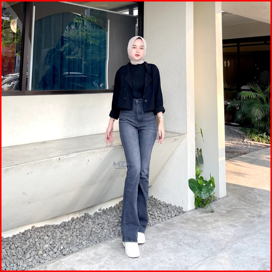 Mcojeans Ootd Sz 27-34 Highwaist Cutbray Jeans Lovy Black Shadow Jeans Streatch Melar Celana Panjang Wanita