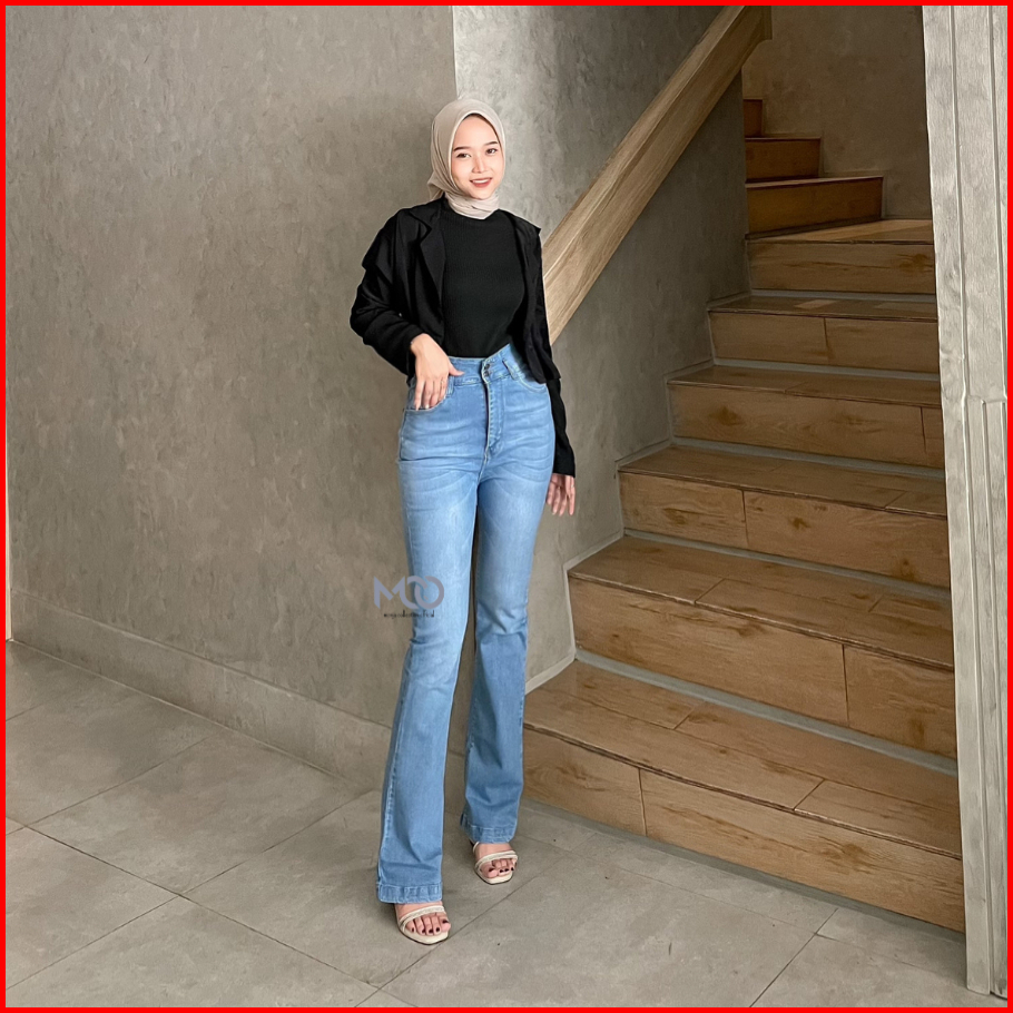 Mcojeans Hw Cutbray Livy Long Pants Jeans Stretch Dark Blue Kancing 2 Boot Cut