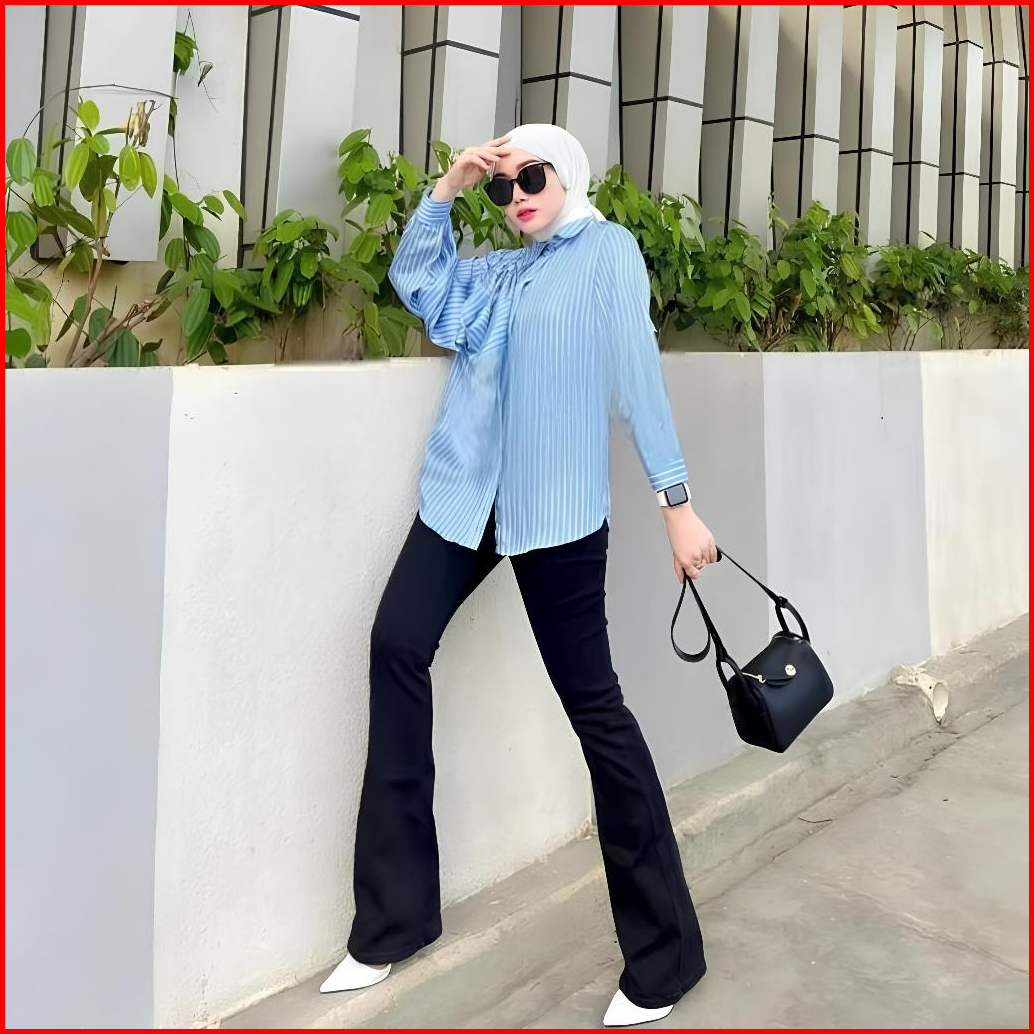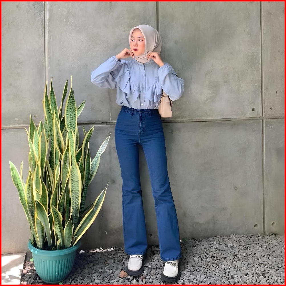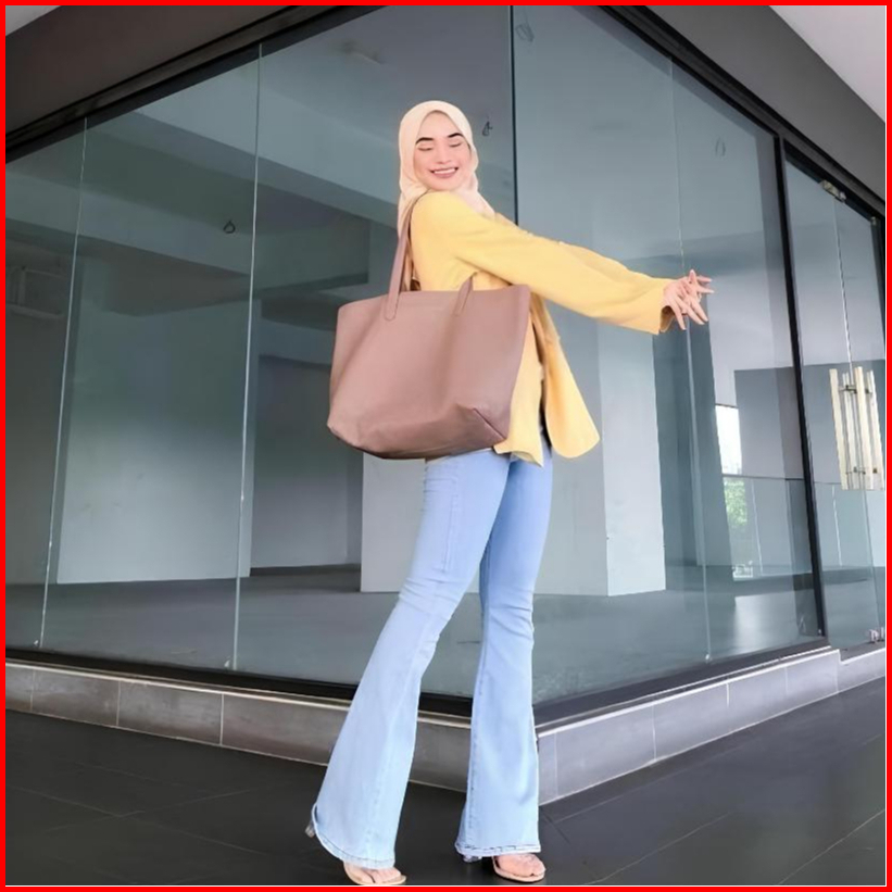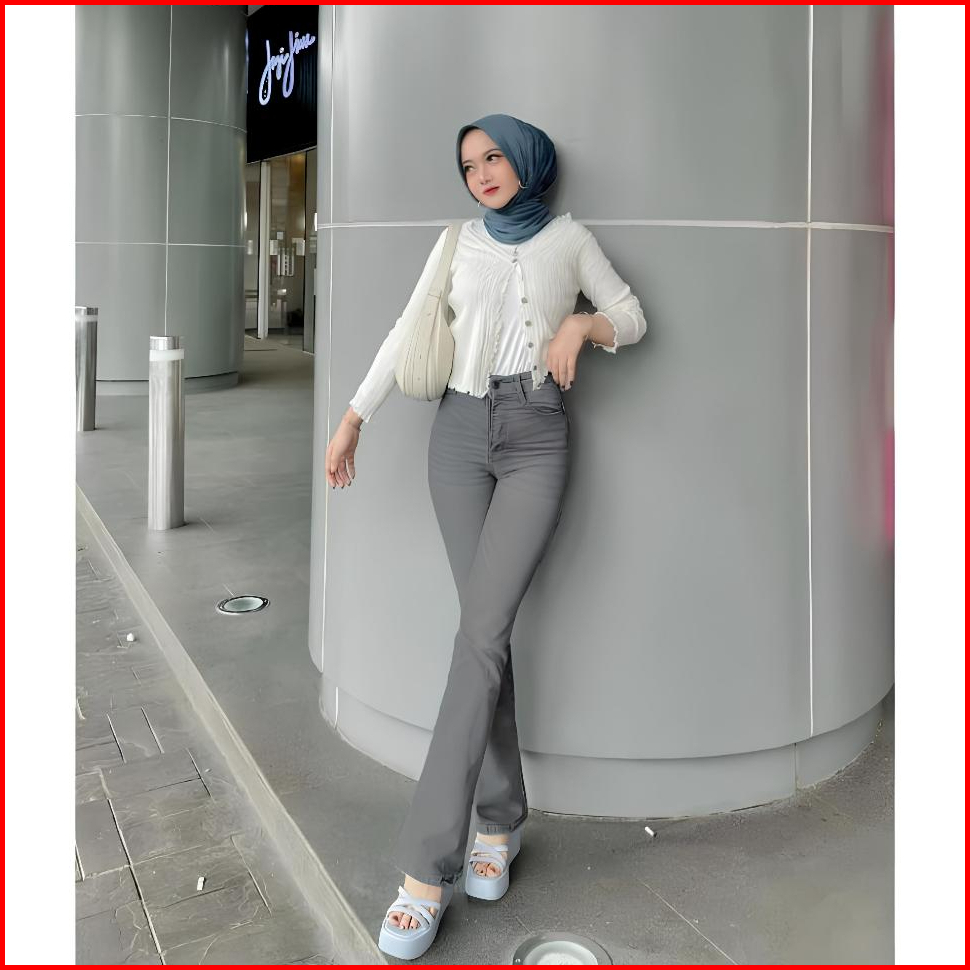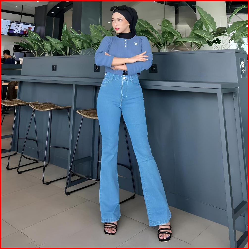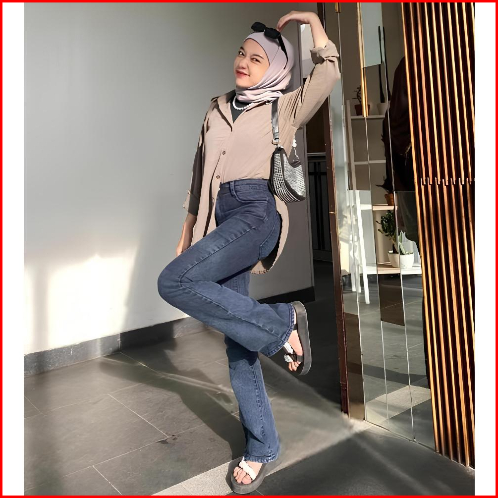 Highwaist Jeans Cutbray Wanita Loose Strech 27-42 Muat Sampai Bb 100 Kg
