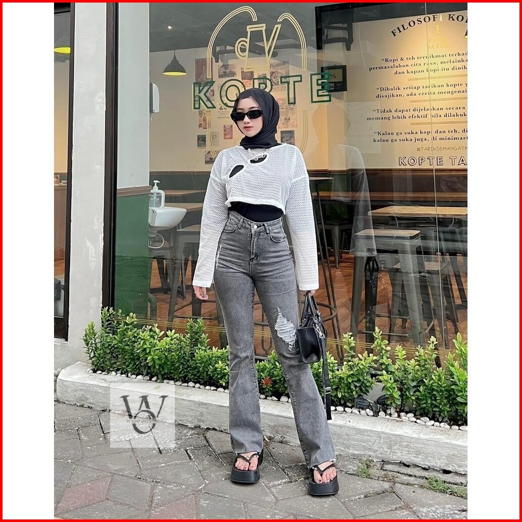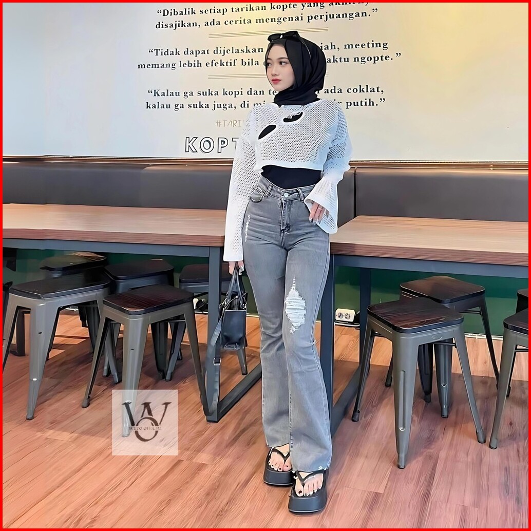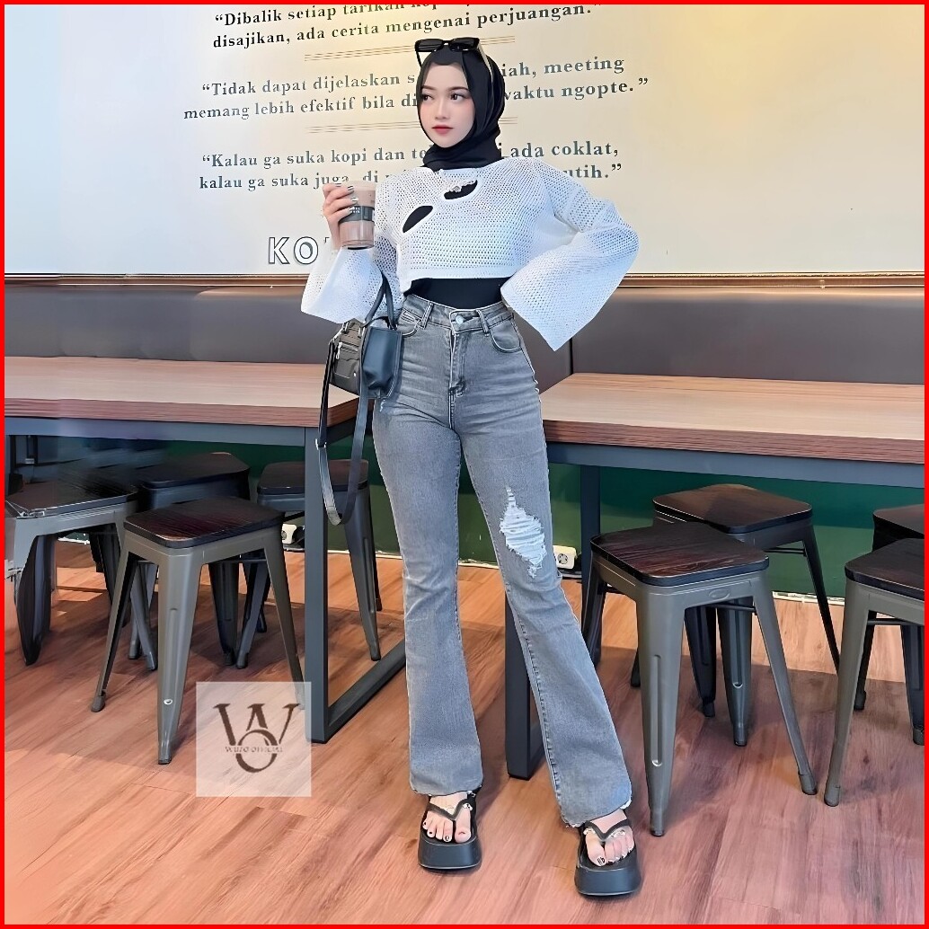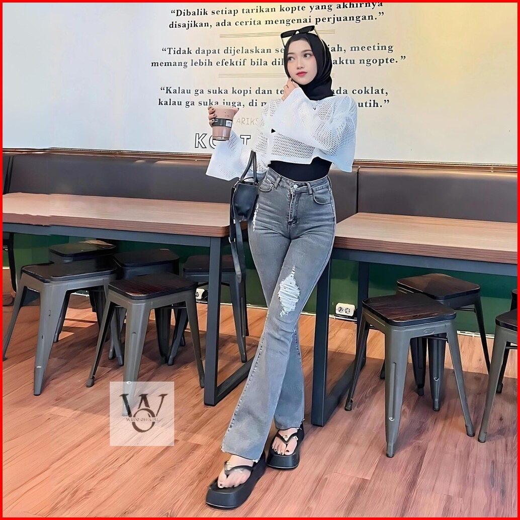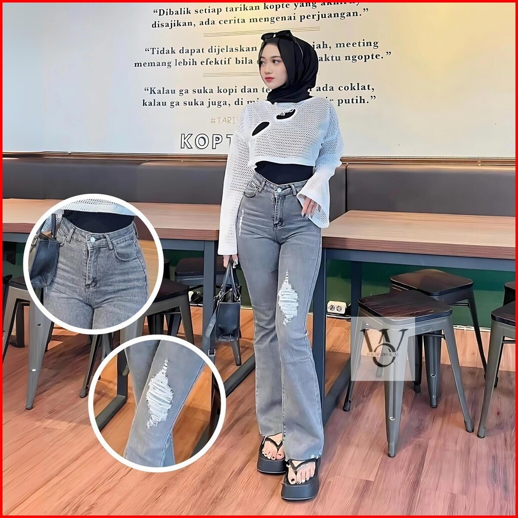 Celana Jeans Cutbray - Celana Sobek Wanita - Celana Ripped Jeans Wanita