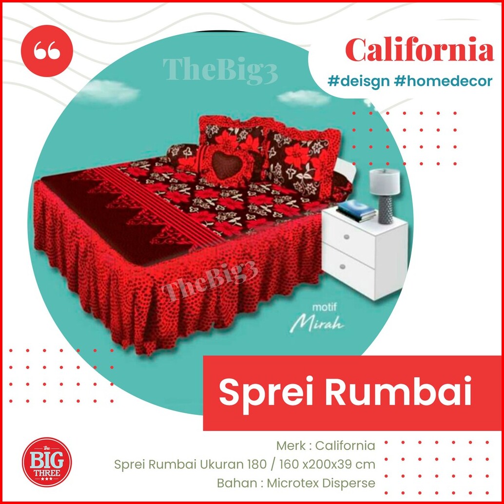 Original California Sprei Rumbai 180x200 King Size Bahan Halus