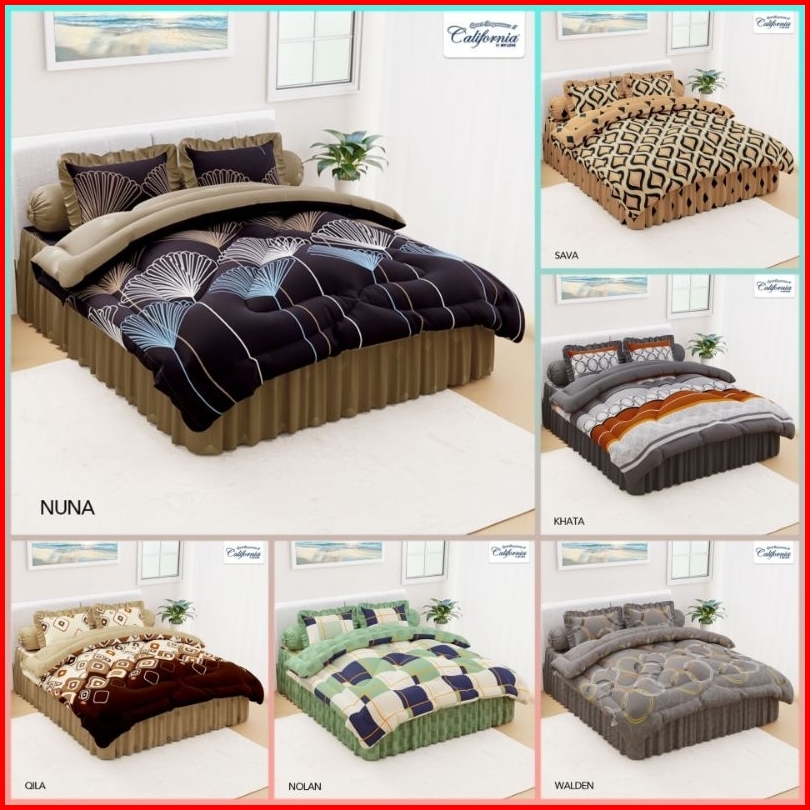 Satu Set Bedcover California Rumbai Uk 180x200 Tinggi Rumbay 45cm Bed Cover California Motif Terbaru