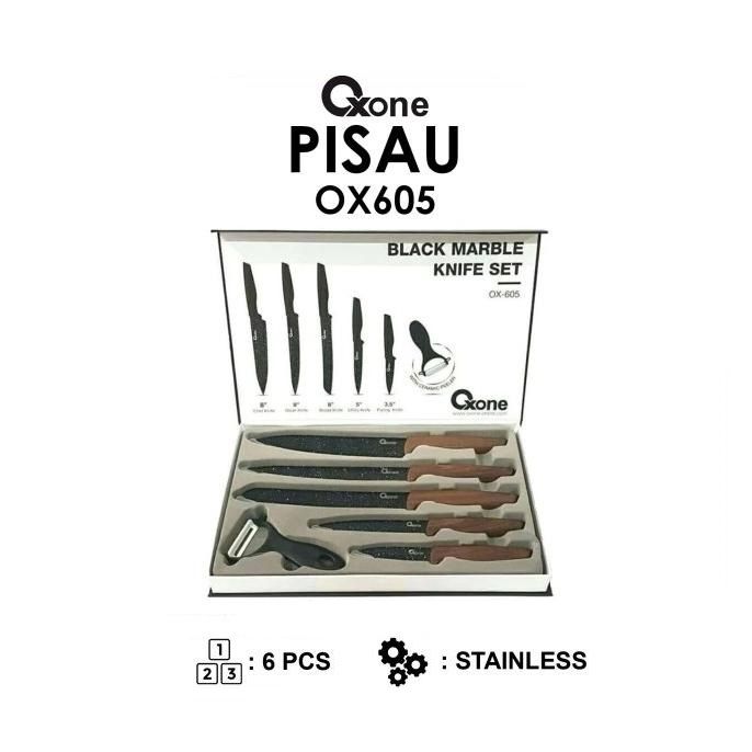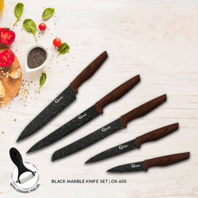 Oxone OX605 Pisau Dapur Black Marble Knife Set OX-605 ORI PRODUCT