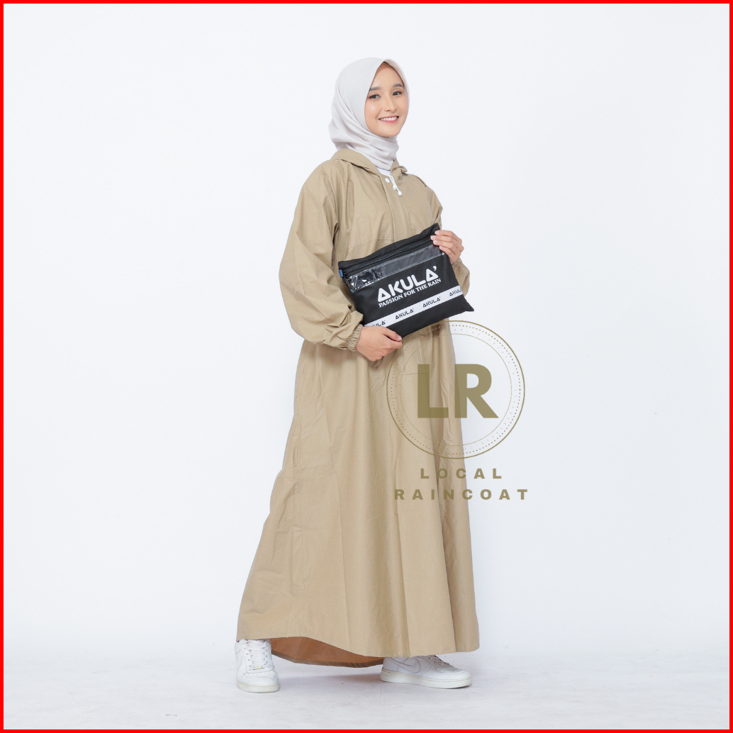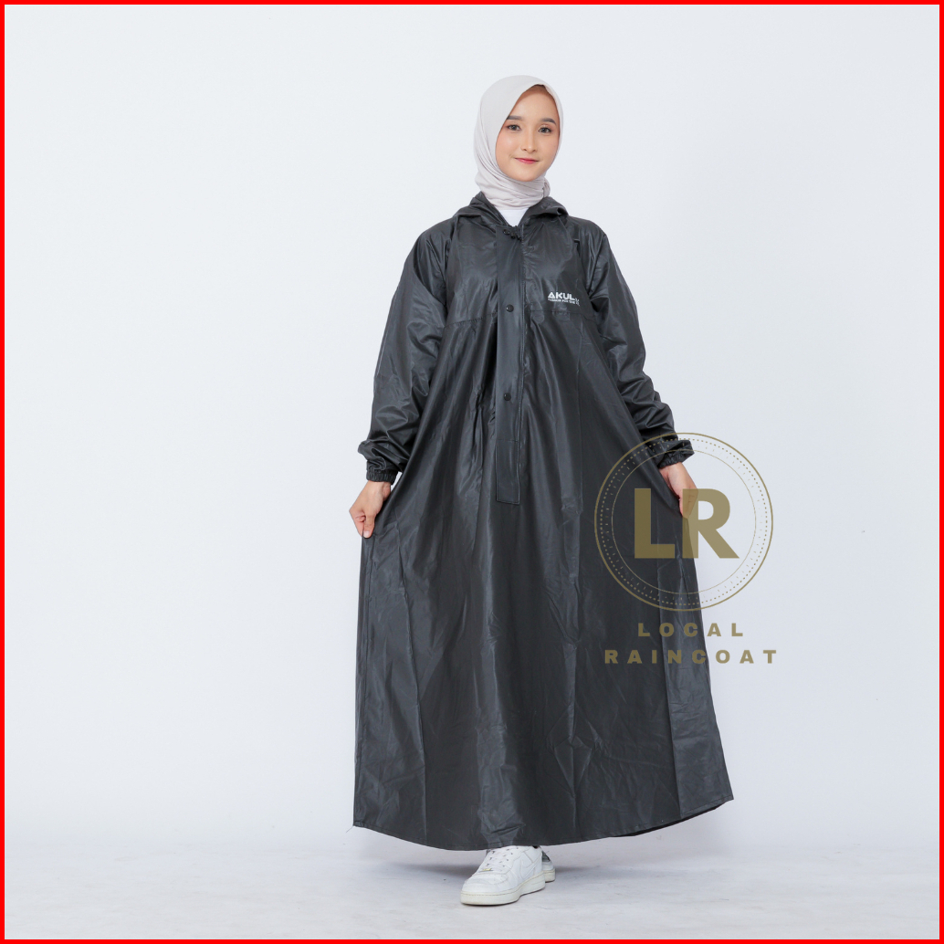 Akula Jas Hujan Gamis Syar I Wanita Premium Tebal Elastis Hitam