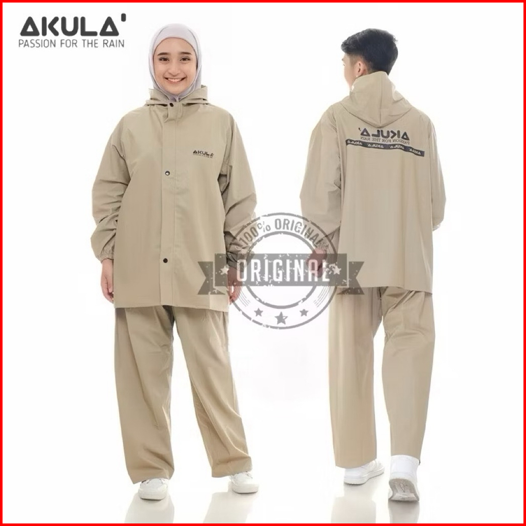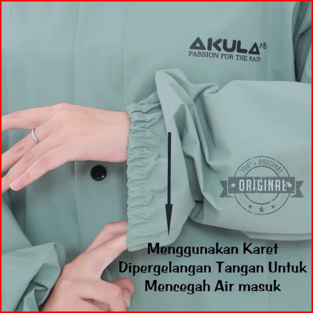 Jas Hujan Akula Stelan Pria Wanita Original Bahan Pvc Terbaik Anti Rembes Hijau