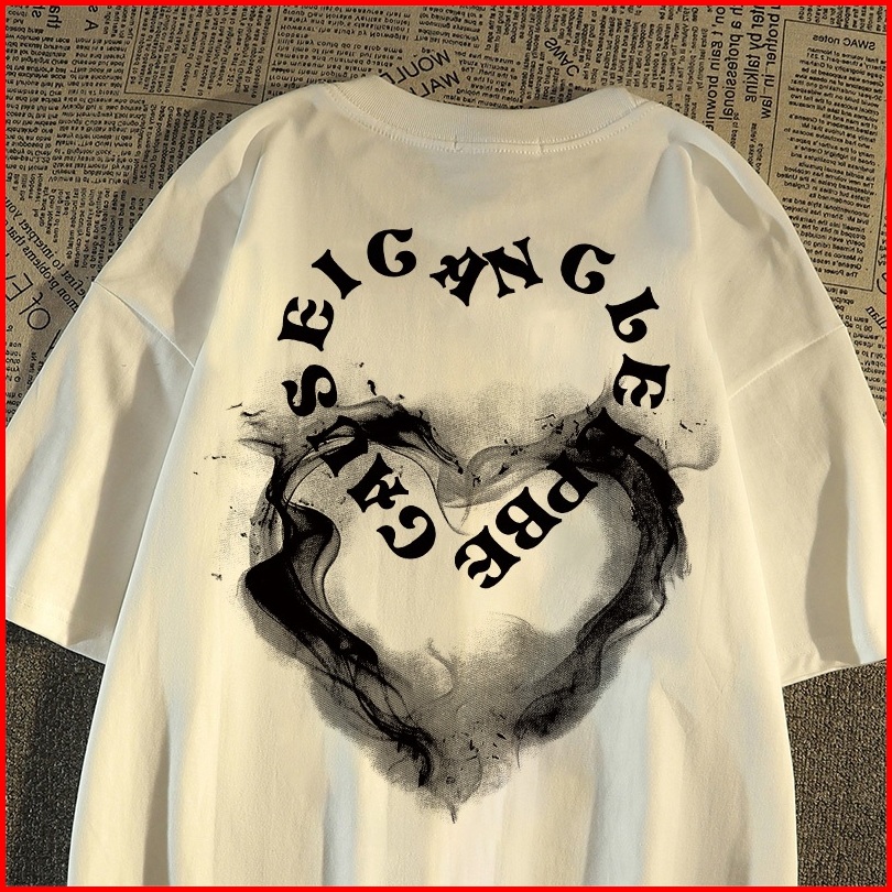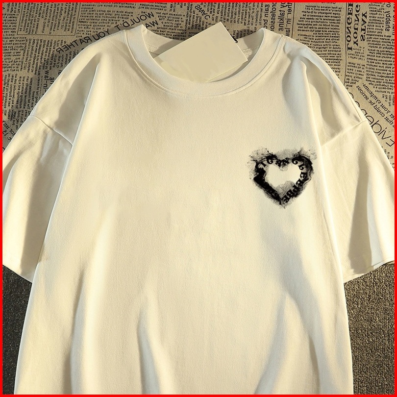 Fastfash Kaos Pakaian Pria Dan Wanita Oversize Huruf Bergaya Berbentuk Hati Baju Kaos Bergaya Netral T-shirt Unisex