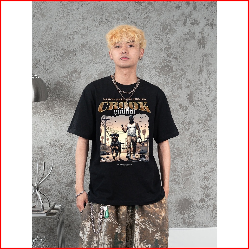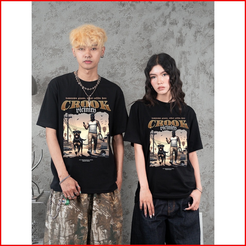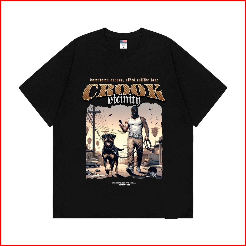 Heartness Kaos Streetwear Pria Wanita Gangster T-shirt Vintage Unisex Black Cotton Combed 24s
