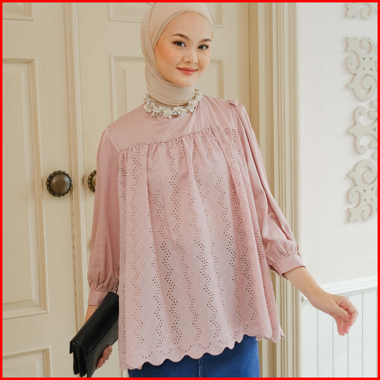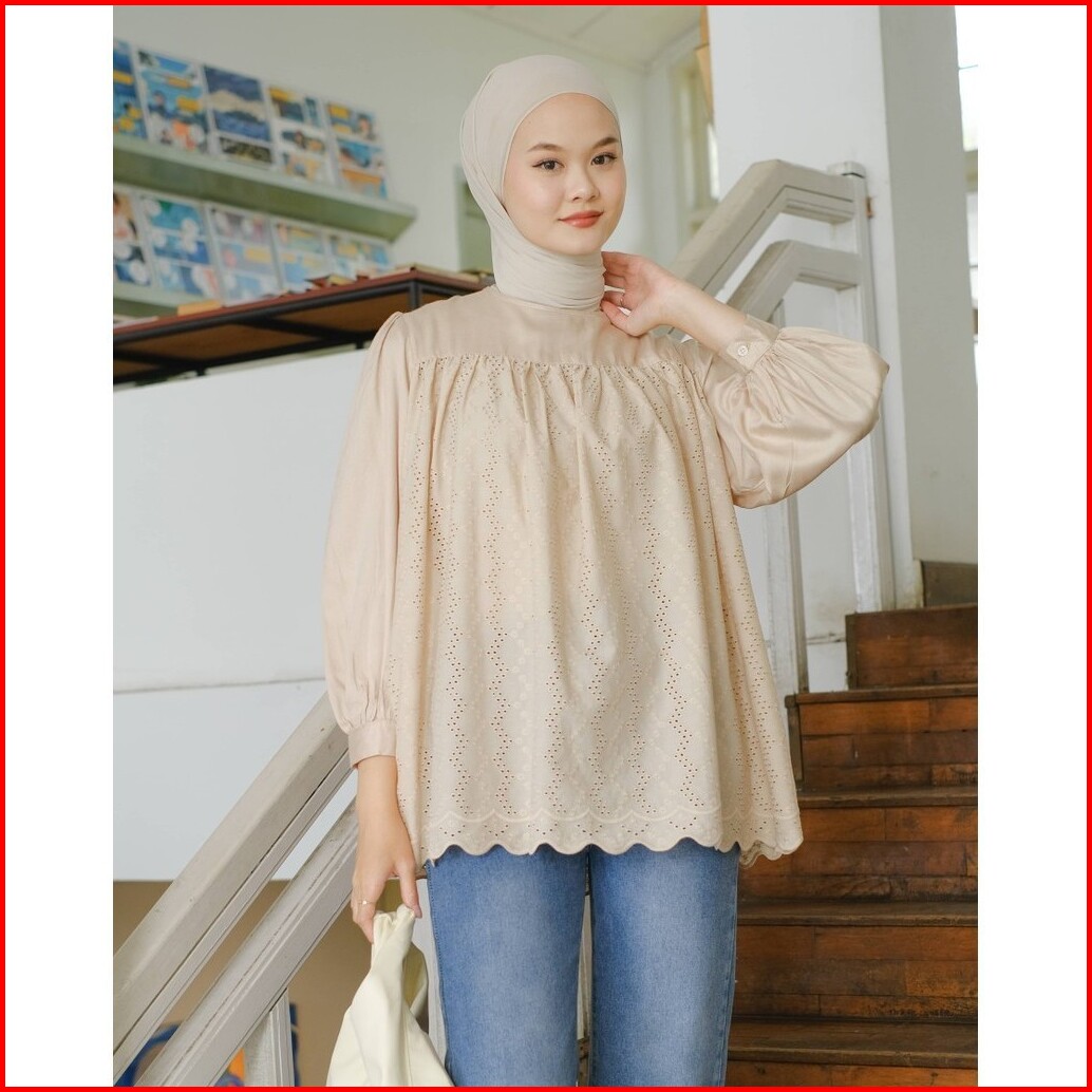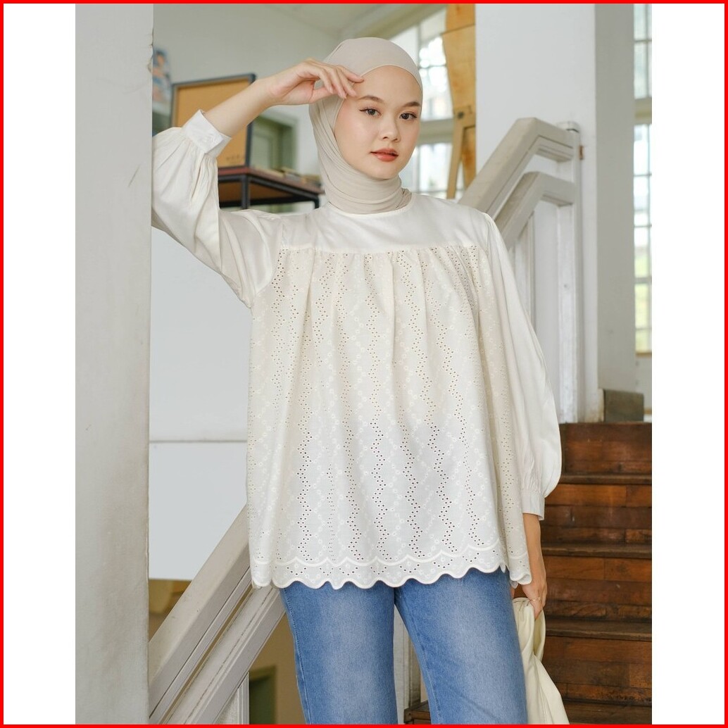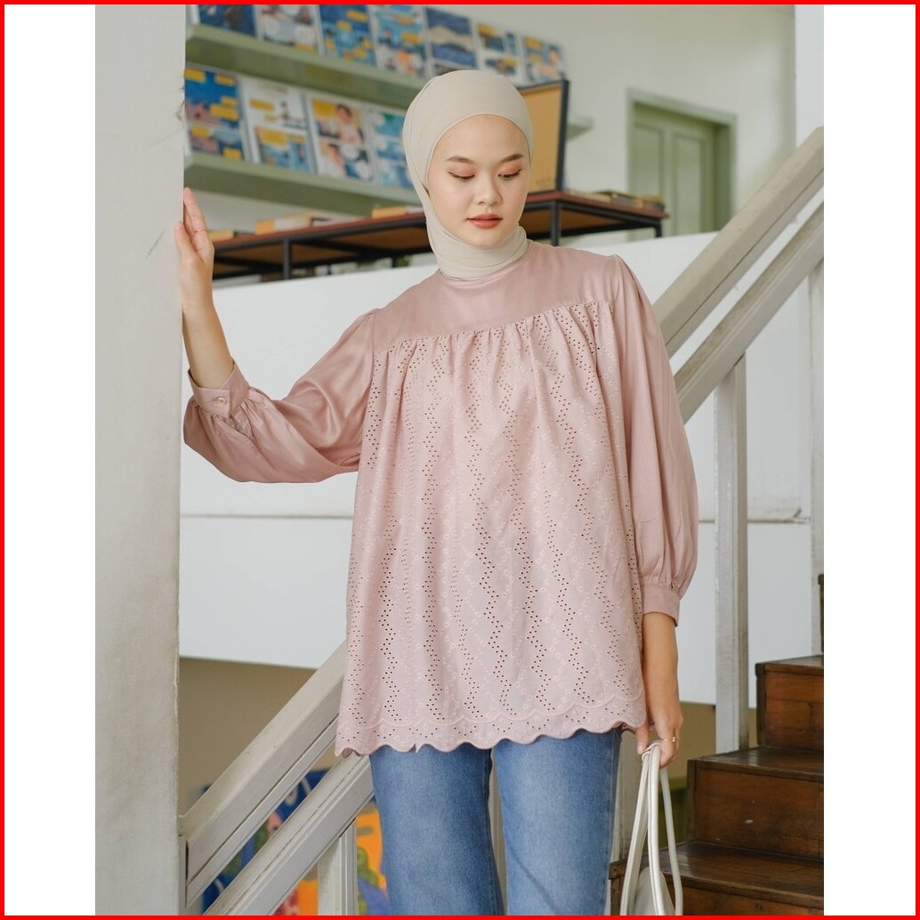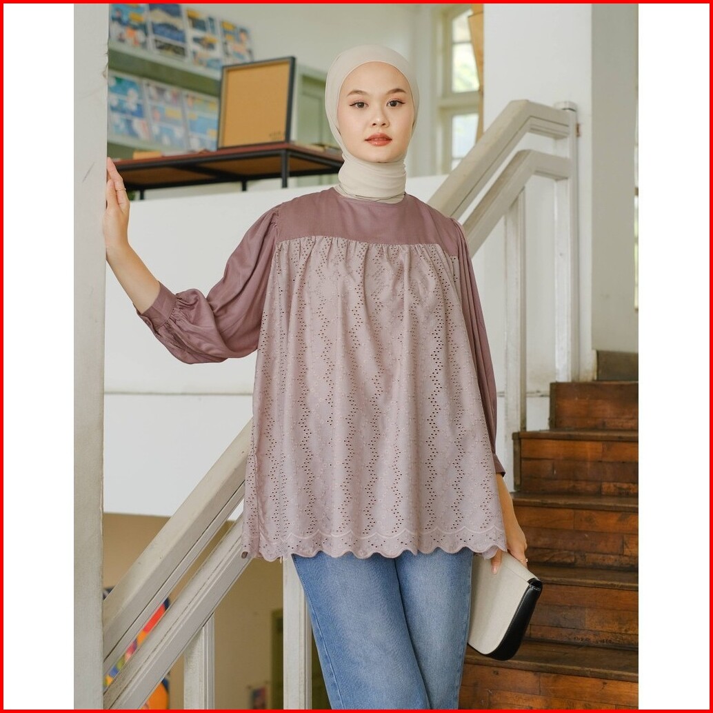 Mayoutfit Huanzi Blouse Blus Rayon Kombinasi Katun Bordir