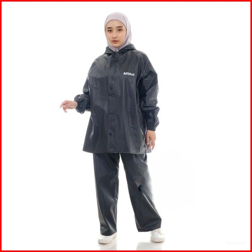 Raincoat Akula Jas Hujan Stelan Baju Celana Atas Bawah Anti Rembes Bahan Pvc Karet Tebal Kuat Elastis Anti Rembes Premiu