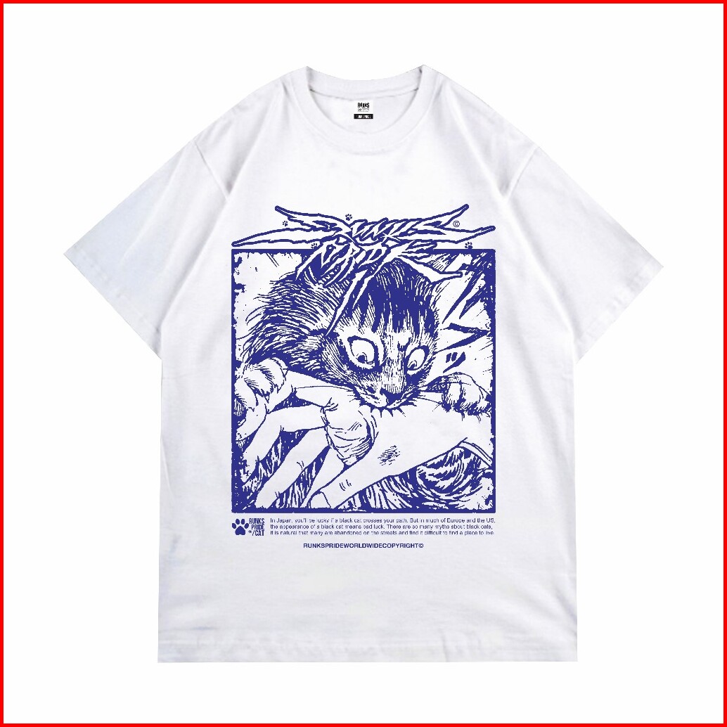 Runks Pride T-shirt Reguler Cotton Combed 24s Monster Cat White