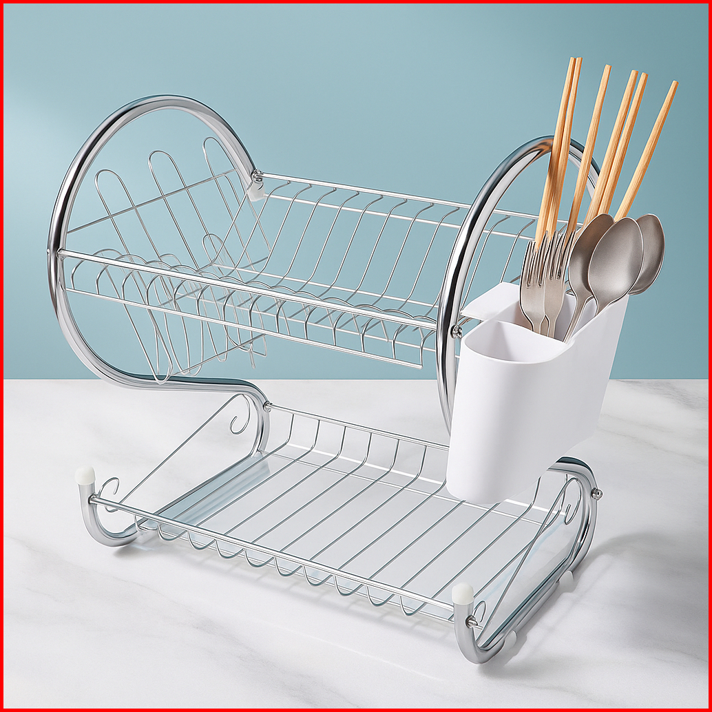 Rak Piring Stainless Steel 2 Susun Modern Multifungsi Rak Piring Stainless Minimalist 2 Susun Tingkat Peralatan Dapur