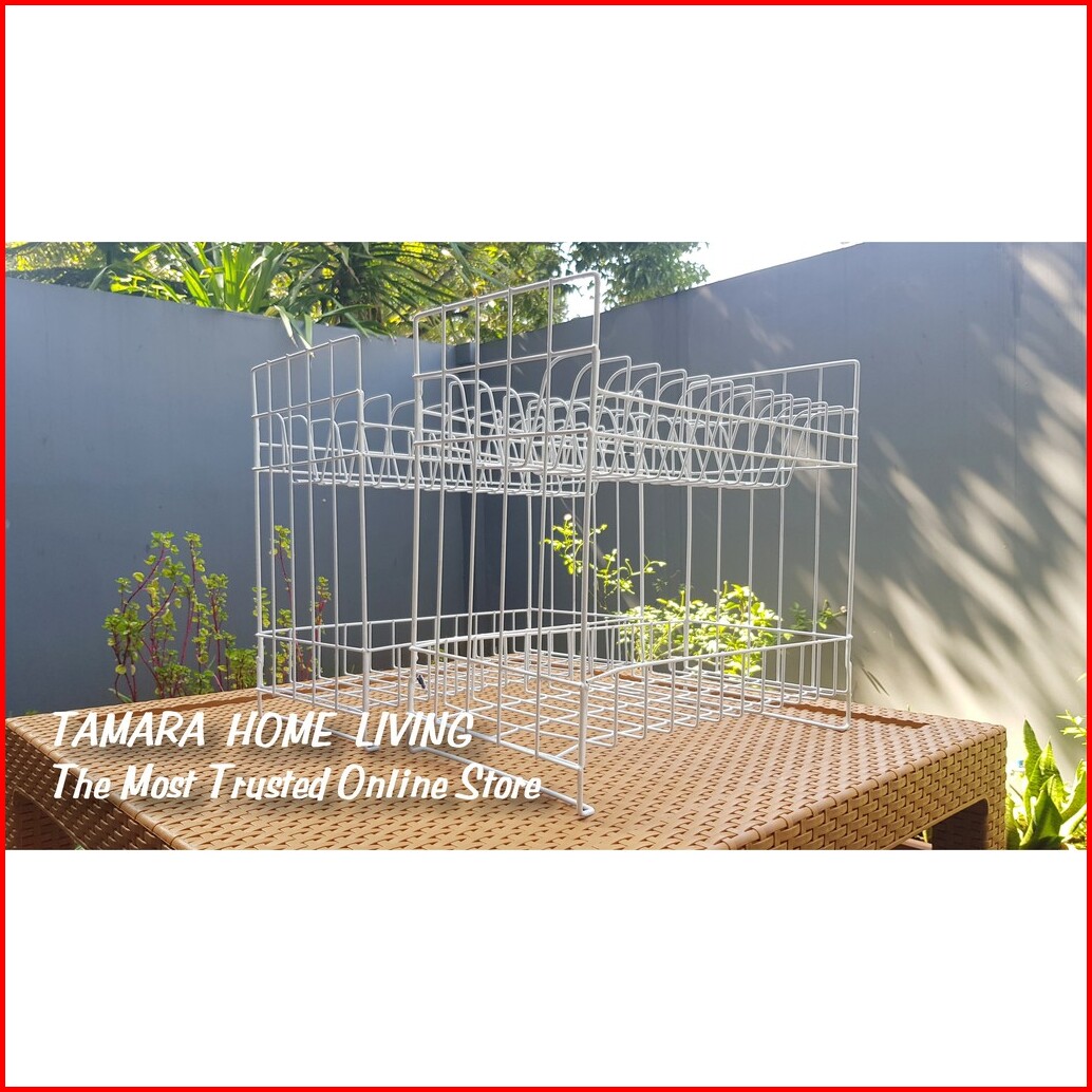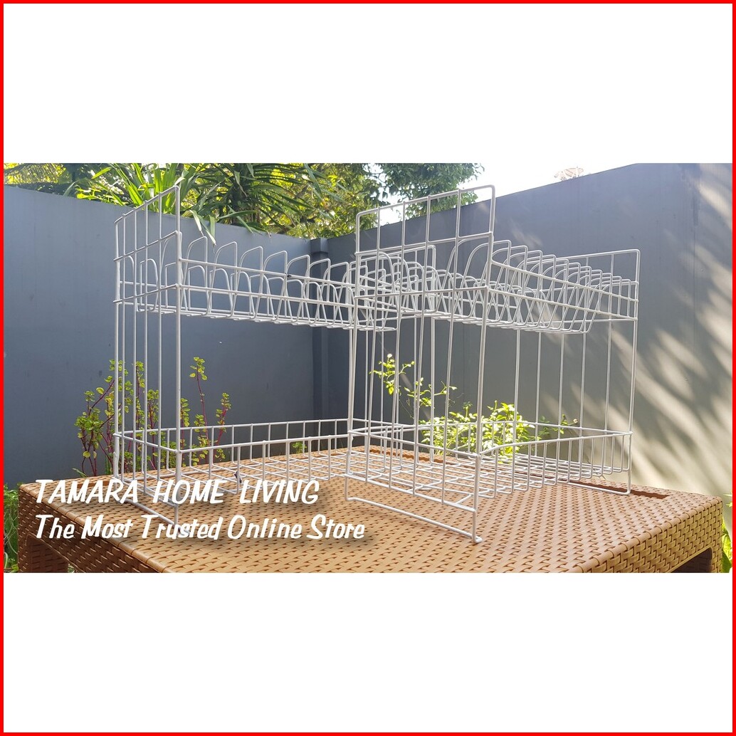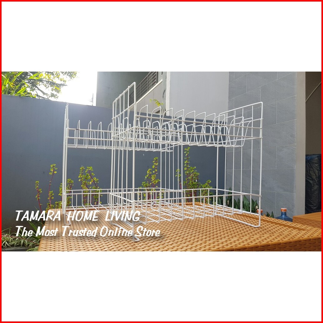 Rak Piring Dapur Gantung Susun 2 Bahan Besi Plastic Coating Minimalis