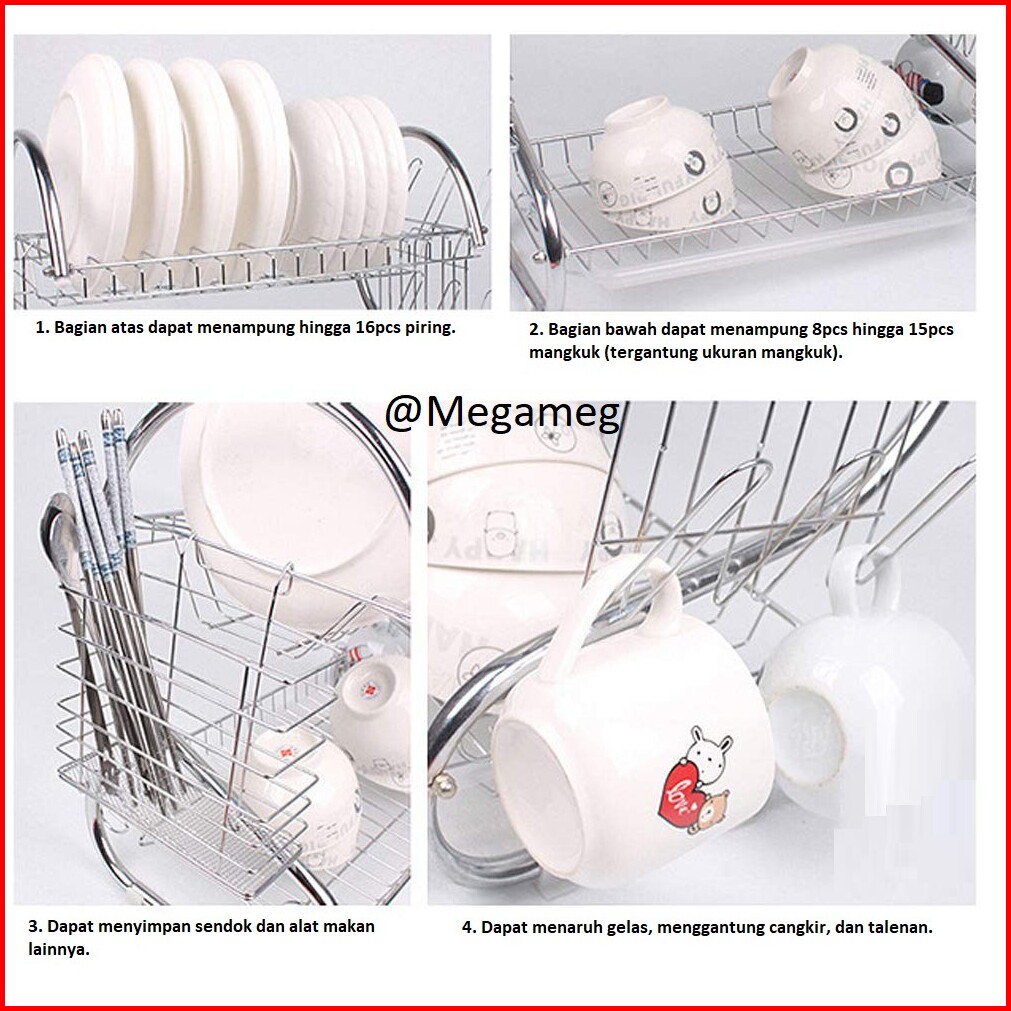 Rak Piring Stainless 2 Layer Rak Piring Mangkok Gelas