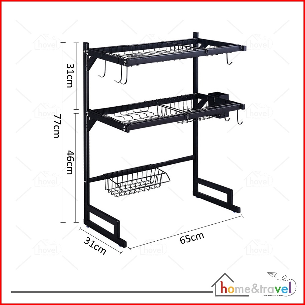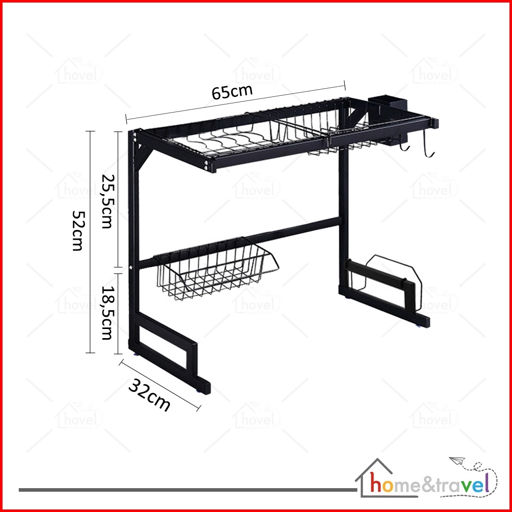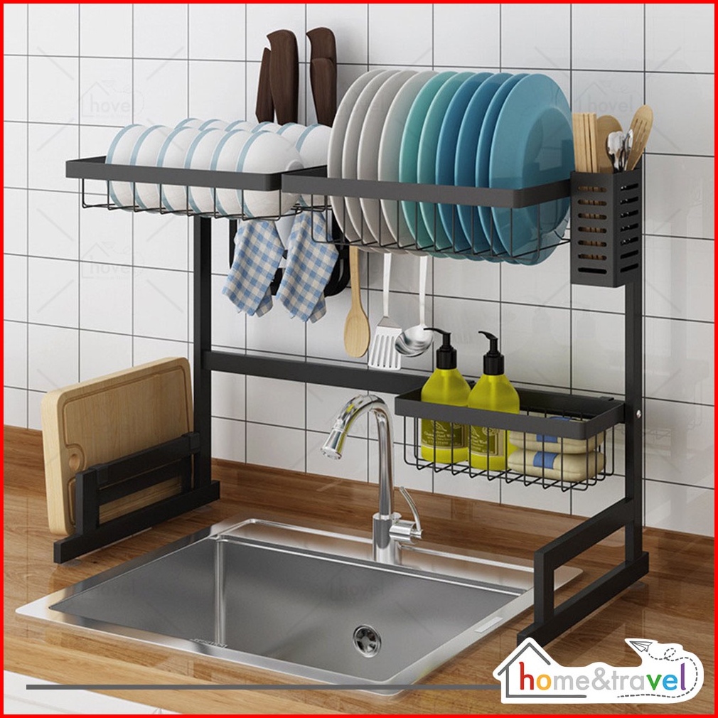 Hovelshop Rak Piring Dapur Wastafel Stainless Hitam 2 Susun Pakai Tutup 65cm Premium Anti Karat