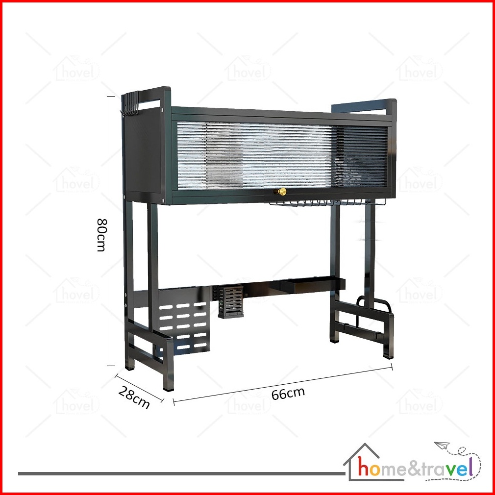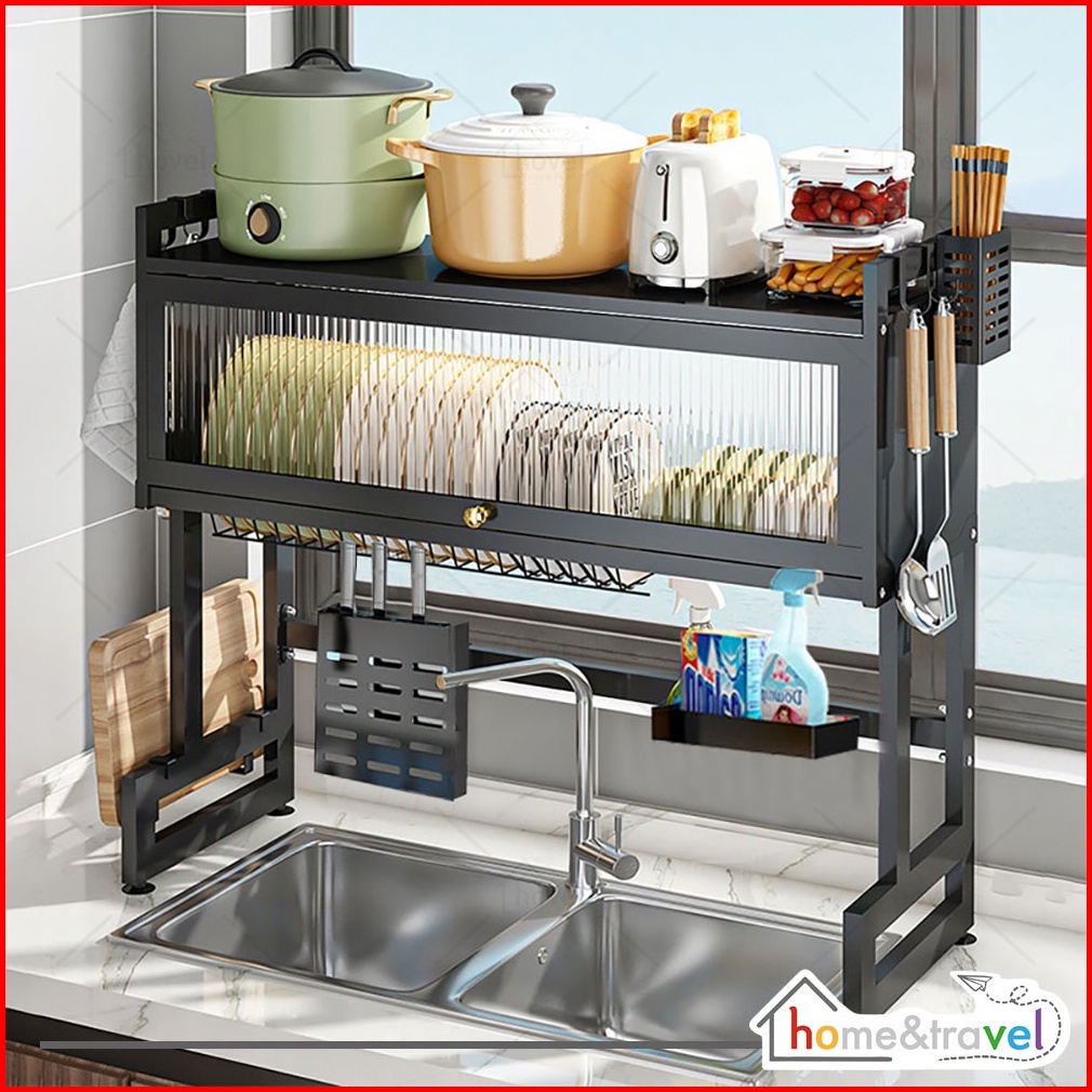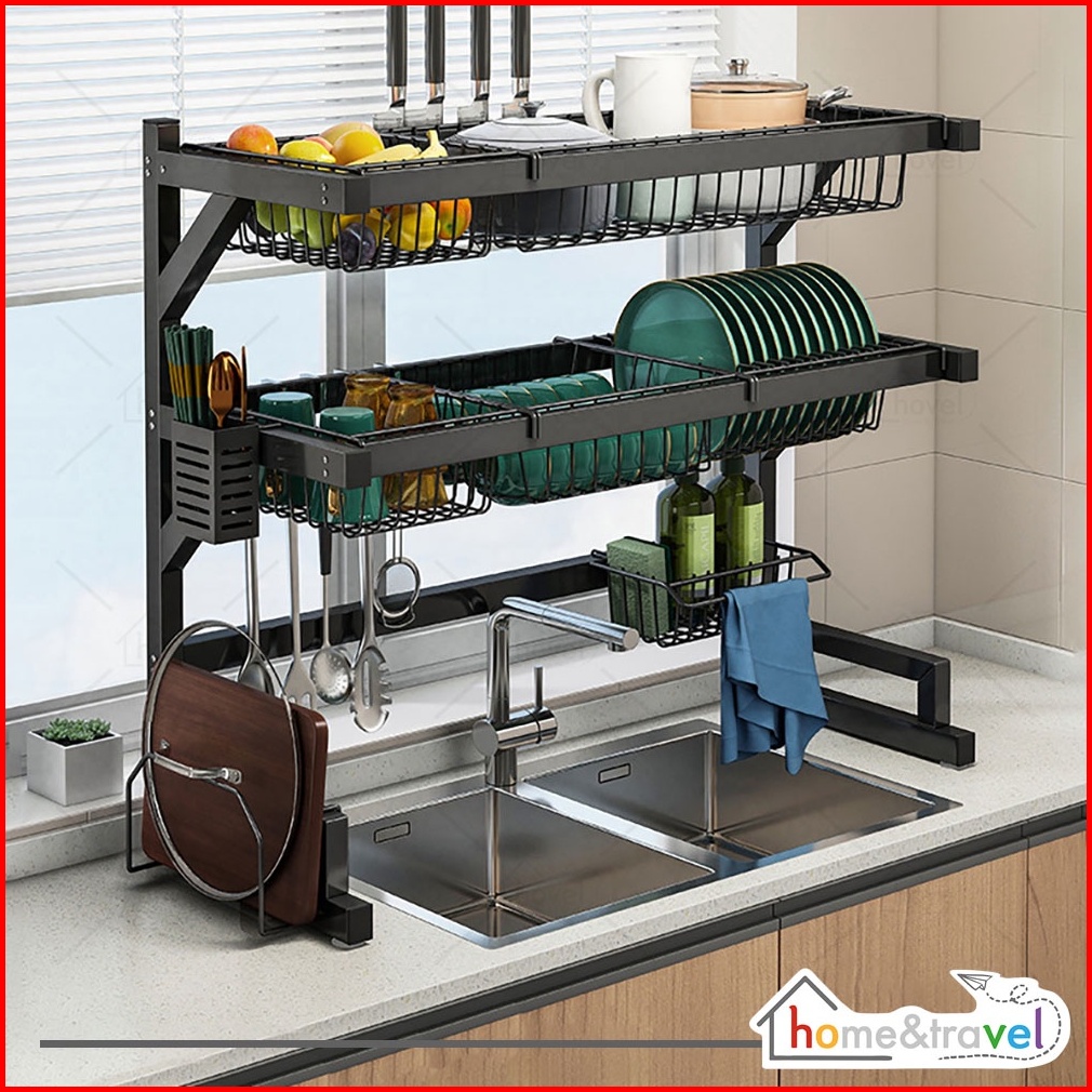 Hovelshop Rak Piring Dapur Wastafel Stainless Hitam 2 Susun Pakai Tutup 65cm Premium Anti Karat