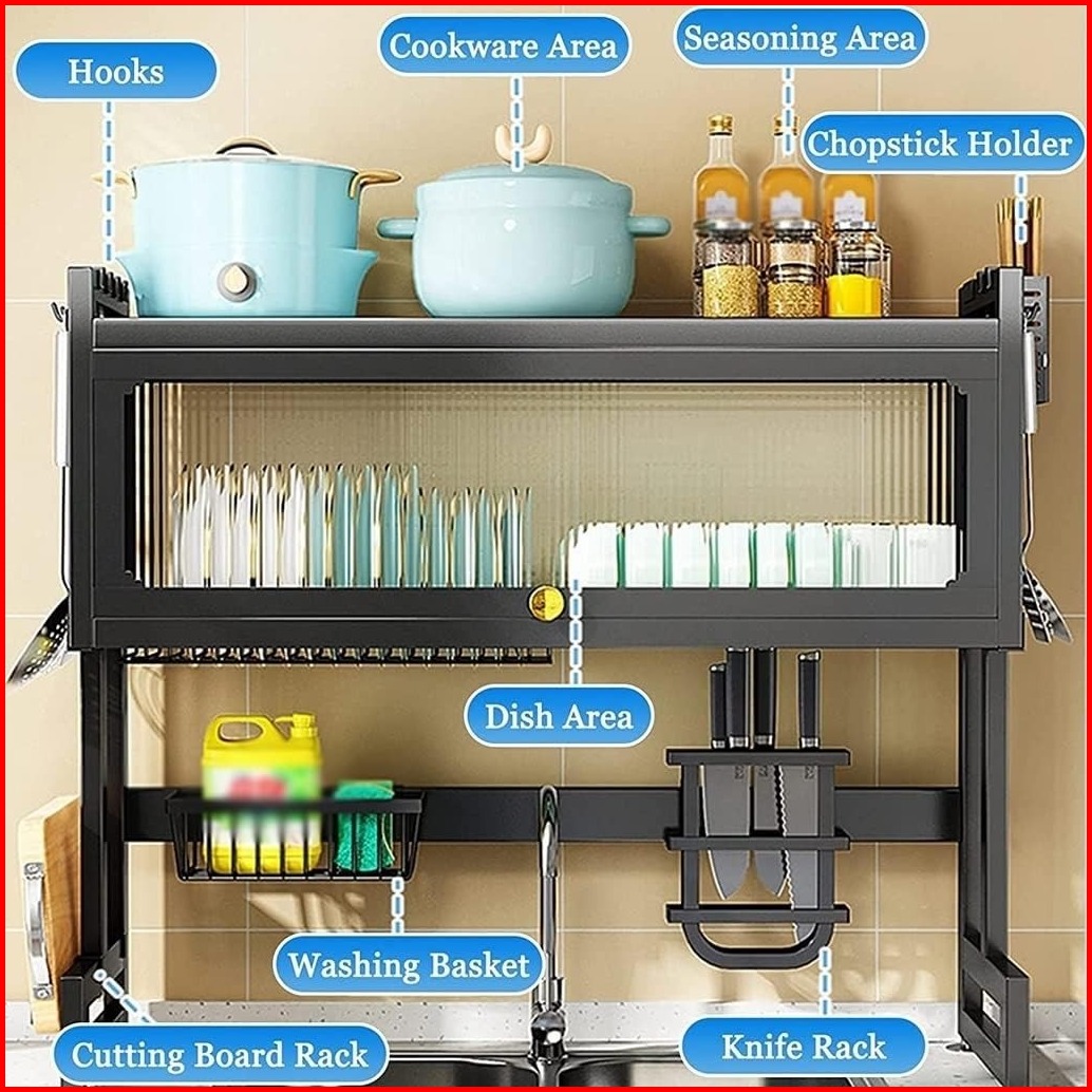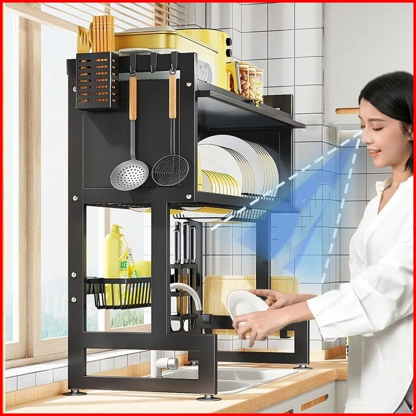 Kitchen Set Rak Pengering Piring 3 Tingkat Atas Wastafel Sink Dish Rack - Rm385 - Black