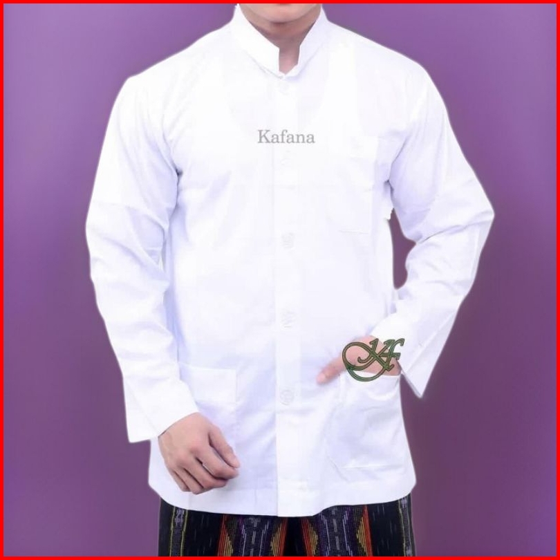 Baju Koko Haibah Premium Pria - Baju Koko Putih Dewasa Bahan Toyobo Import Adem Nyaman Dipakai Kerah Tegak Tiga Saku Dep