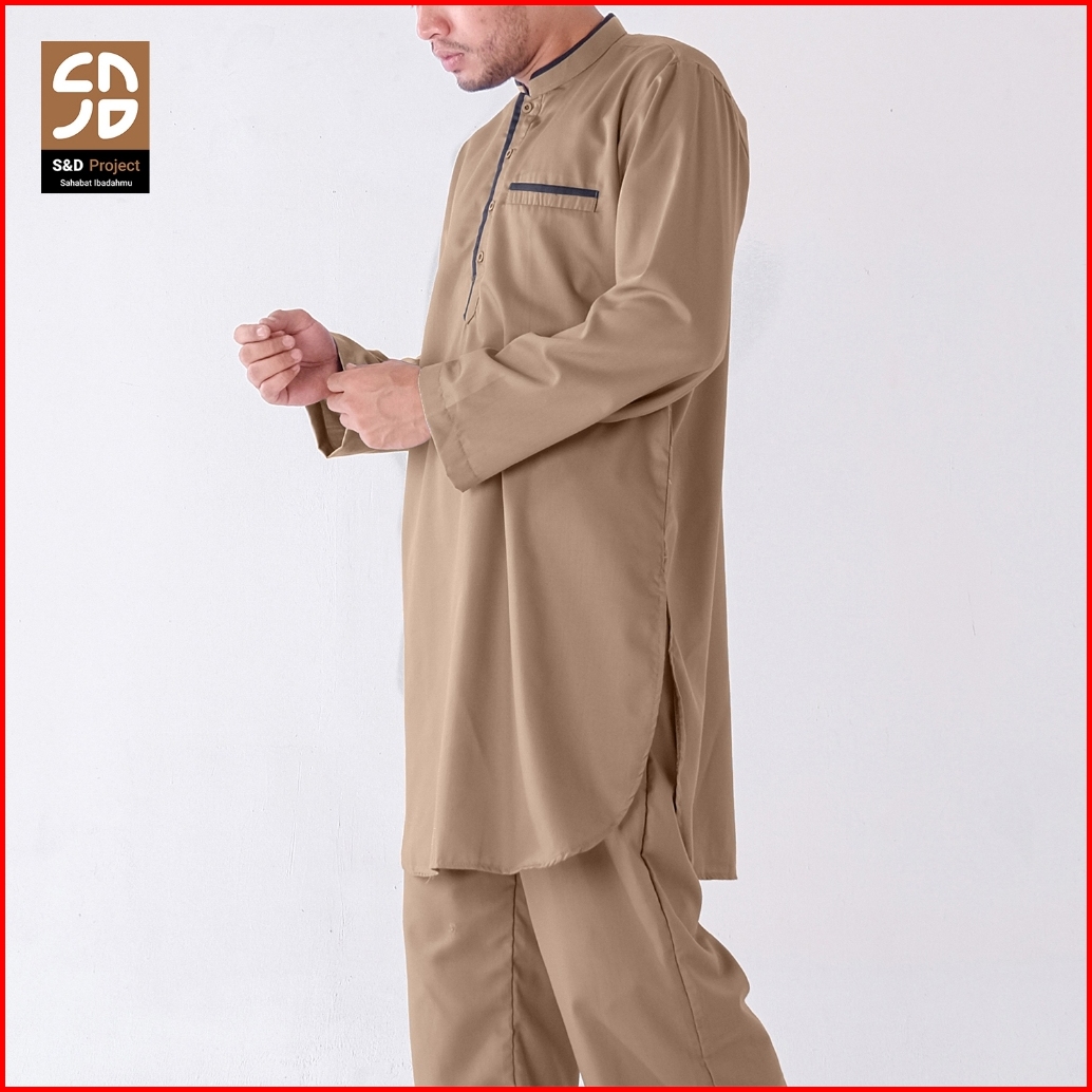 S D Project Setelan Kurta Koko Katun Toyobo Polos Jumbo Lengan Panjang Kerah Mandarin S M L Xl Xxl 3xl 4xl - Coklat Muda