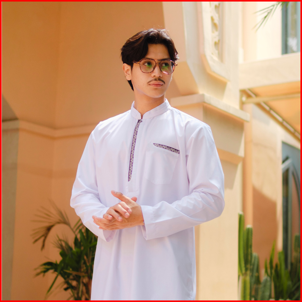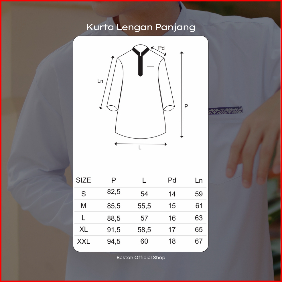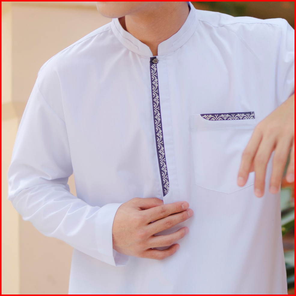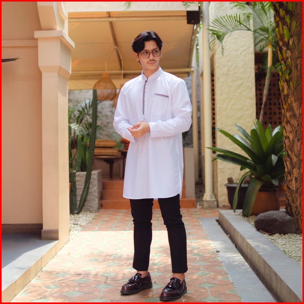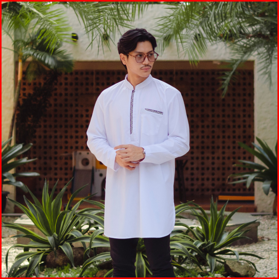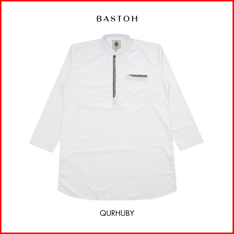 Bastoh Qurhuby Baju Koko Kurta Pria Dewasa Bordir Putih Lengan Panjang