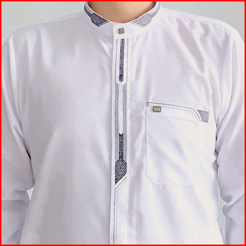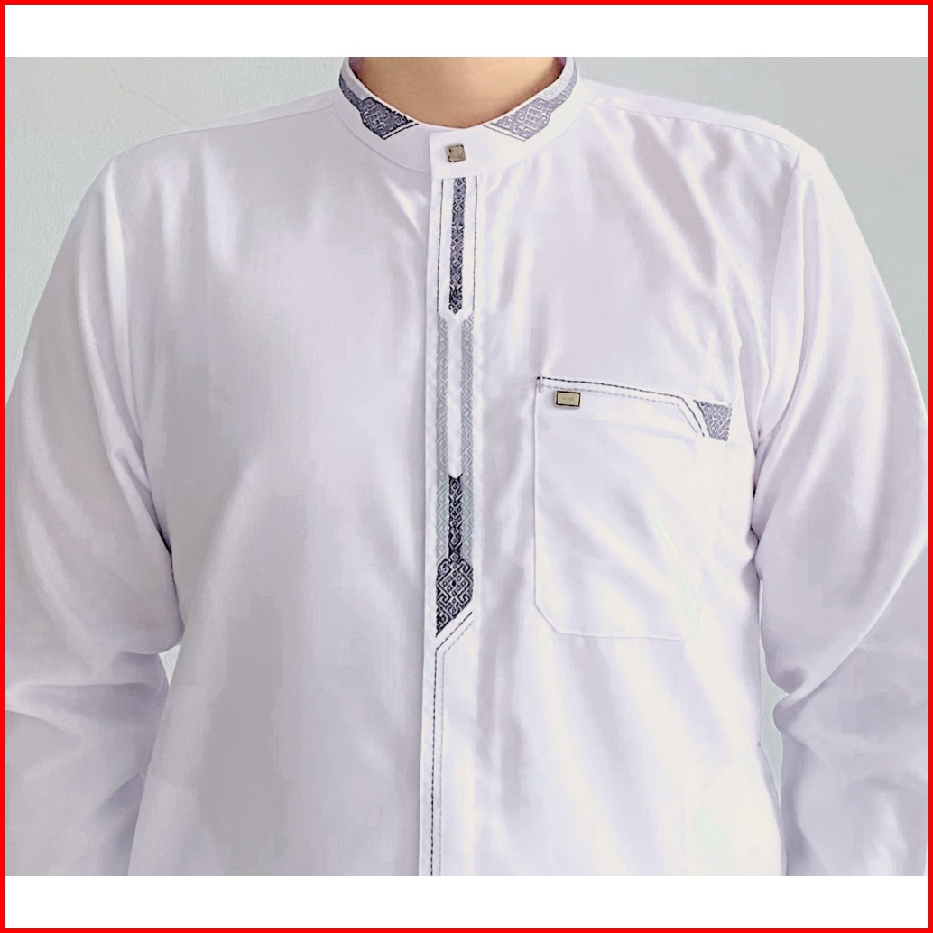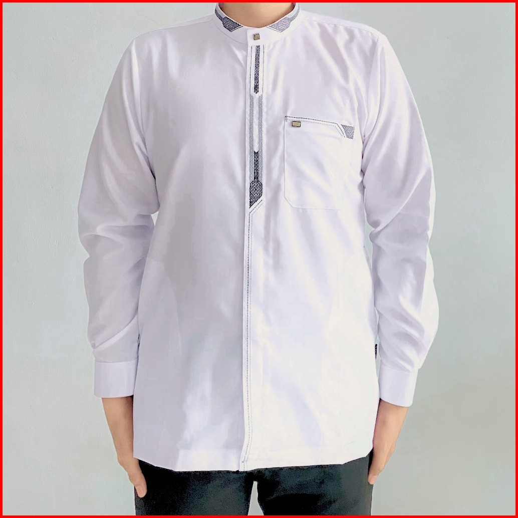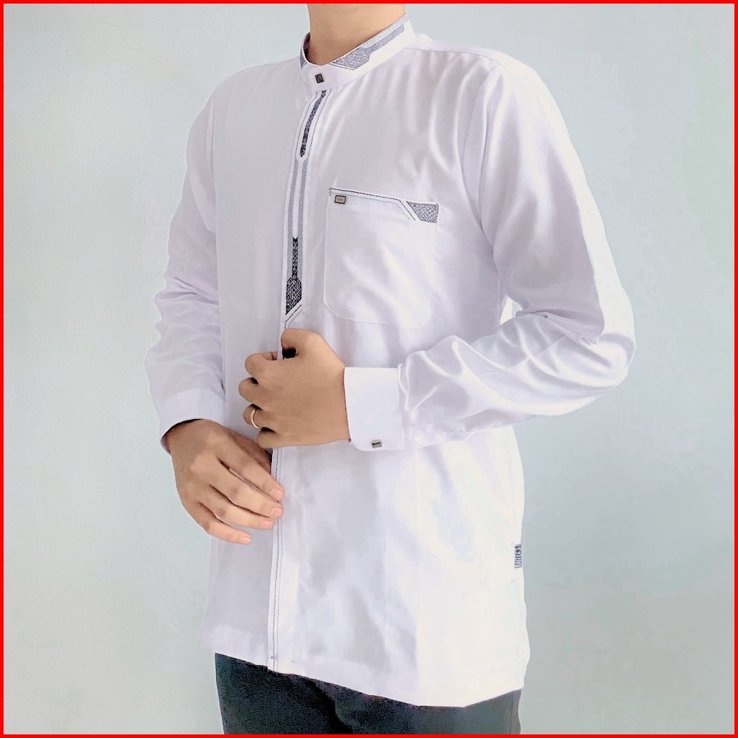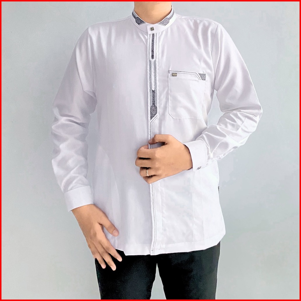 Baju Koko Putih Pria Dewasa Lengan Panjang Manset Atasan Muslim Minimalis