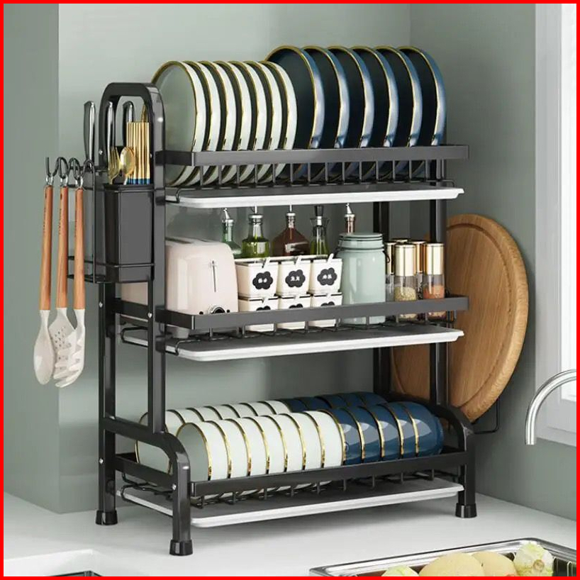 Rak Piring Wastafel Kokoh Kuat Rak Piring Dapur Stainless Steel Penyimpanan Rak Pengering Piring