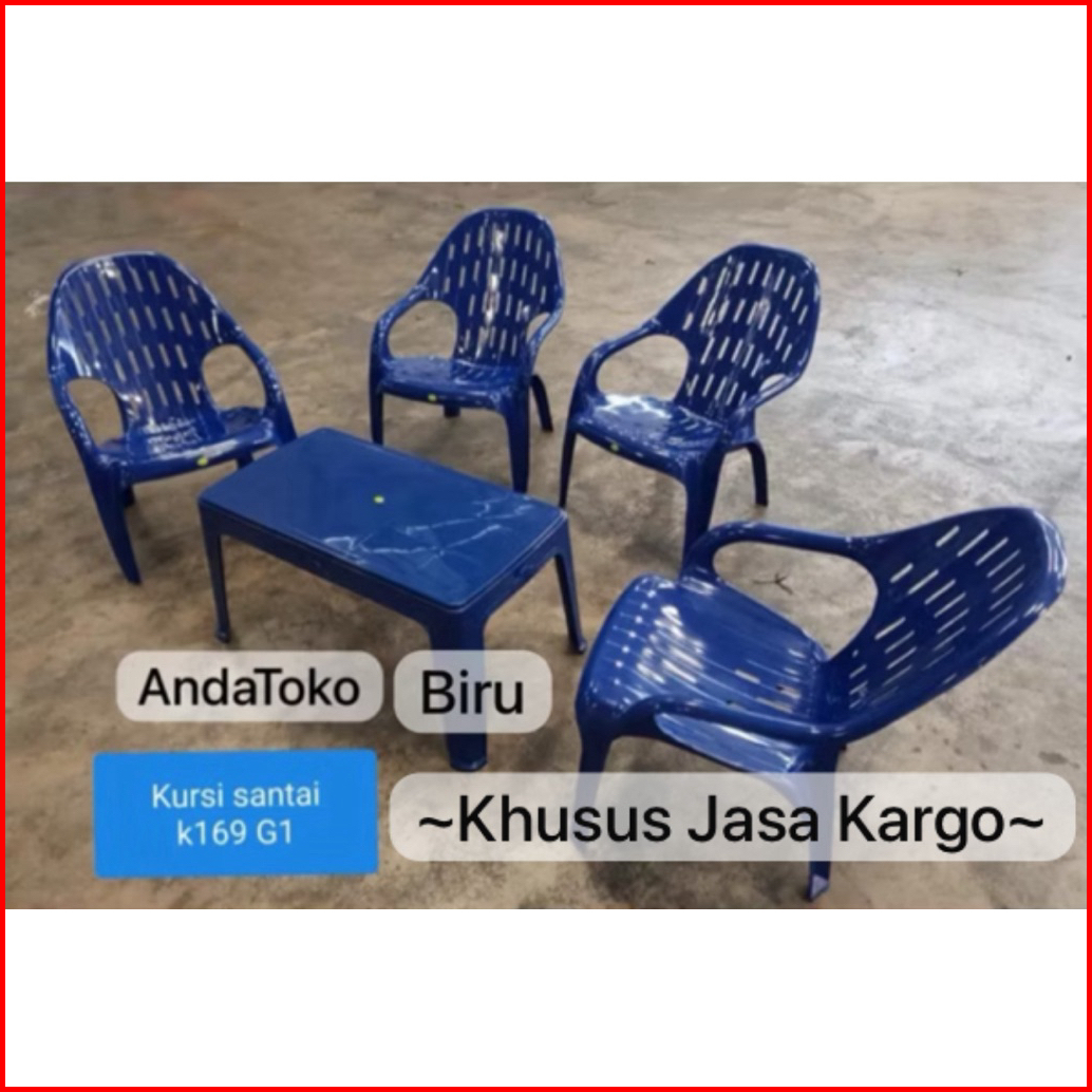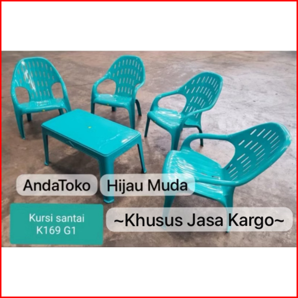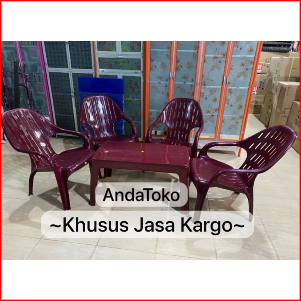 Khusus Kargo Kursi Plastik Santai G1 1set 2kursi 1mejapanjang 4kursi 1mejapanjang