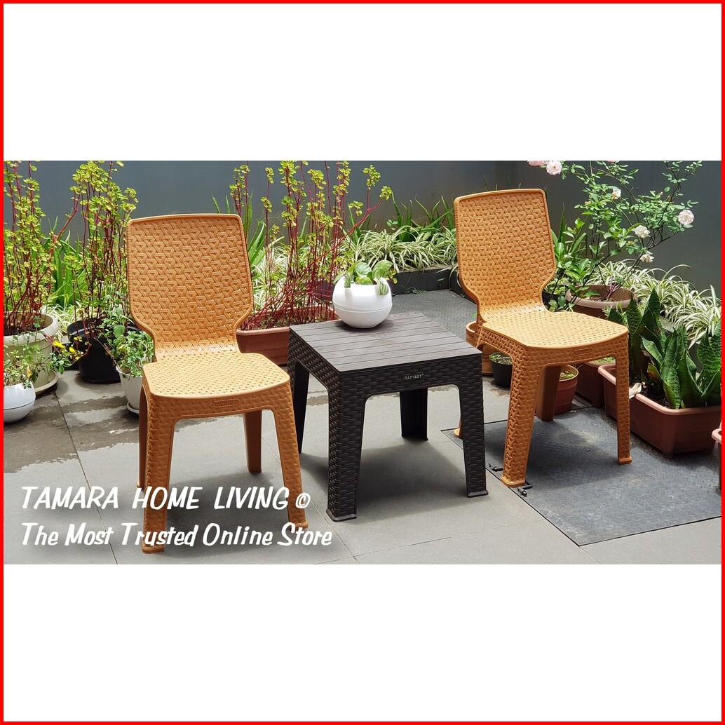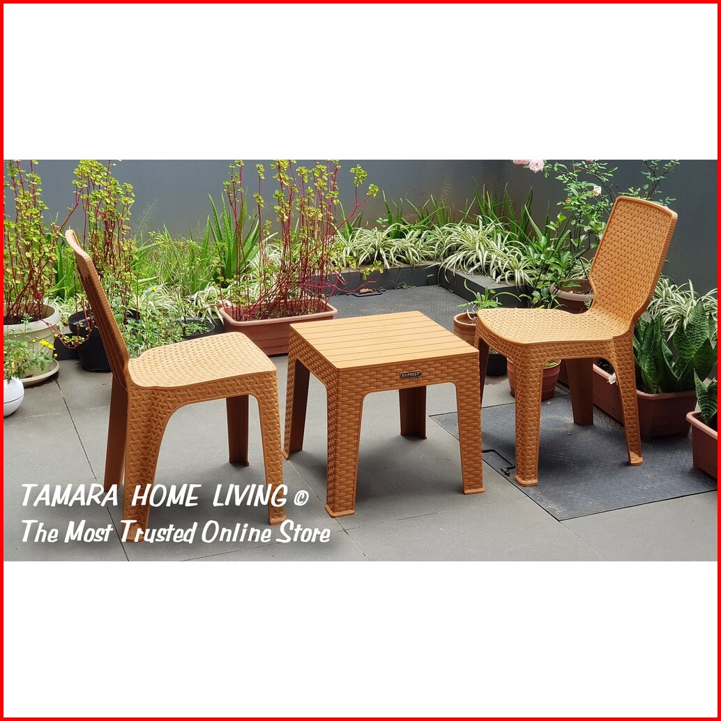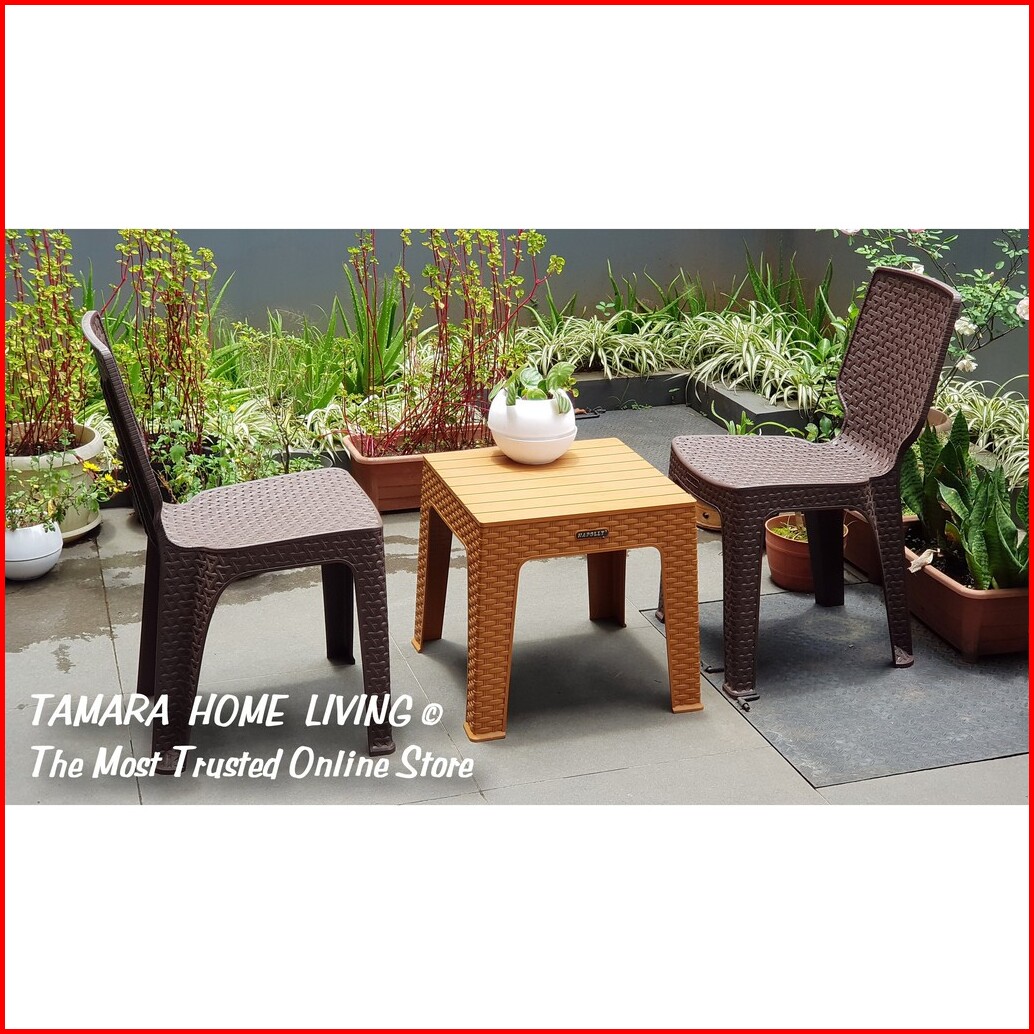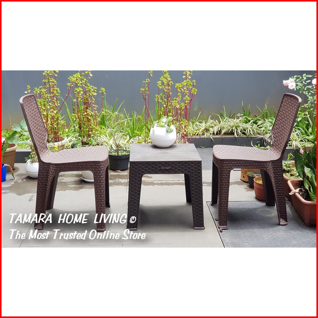 Paket A1 Kursi Plastik Meja Taman Minimalis Motif Anyaman Rotan Jati - 1 Set 2 Kursi 1 Meja