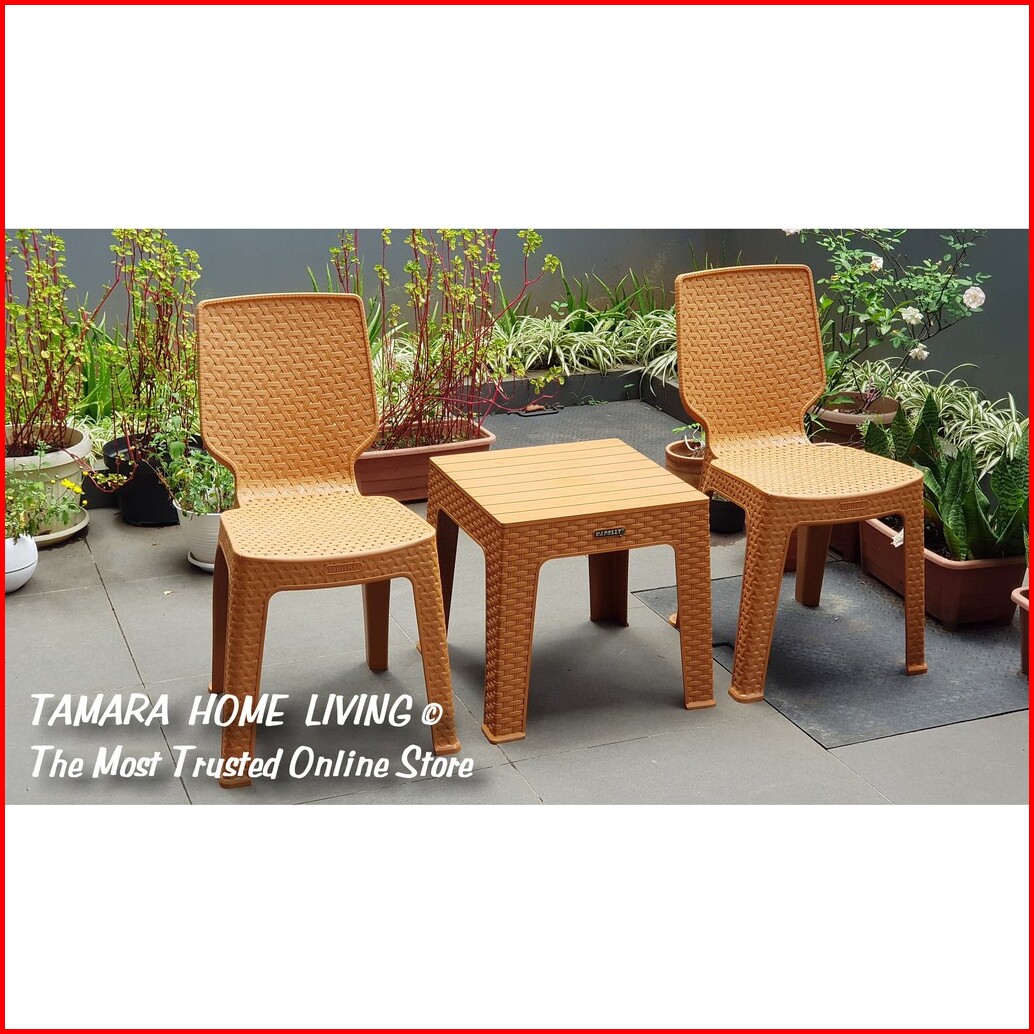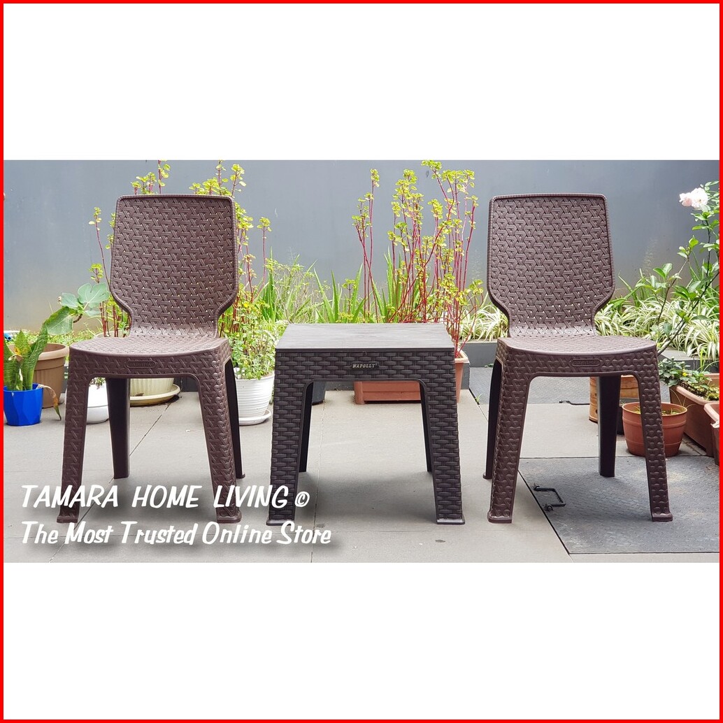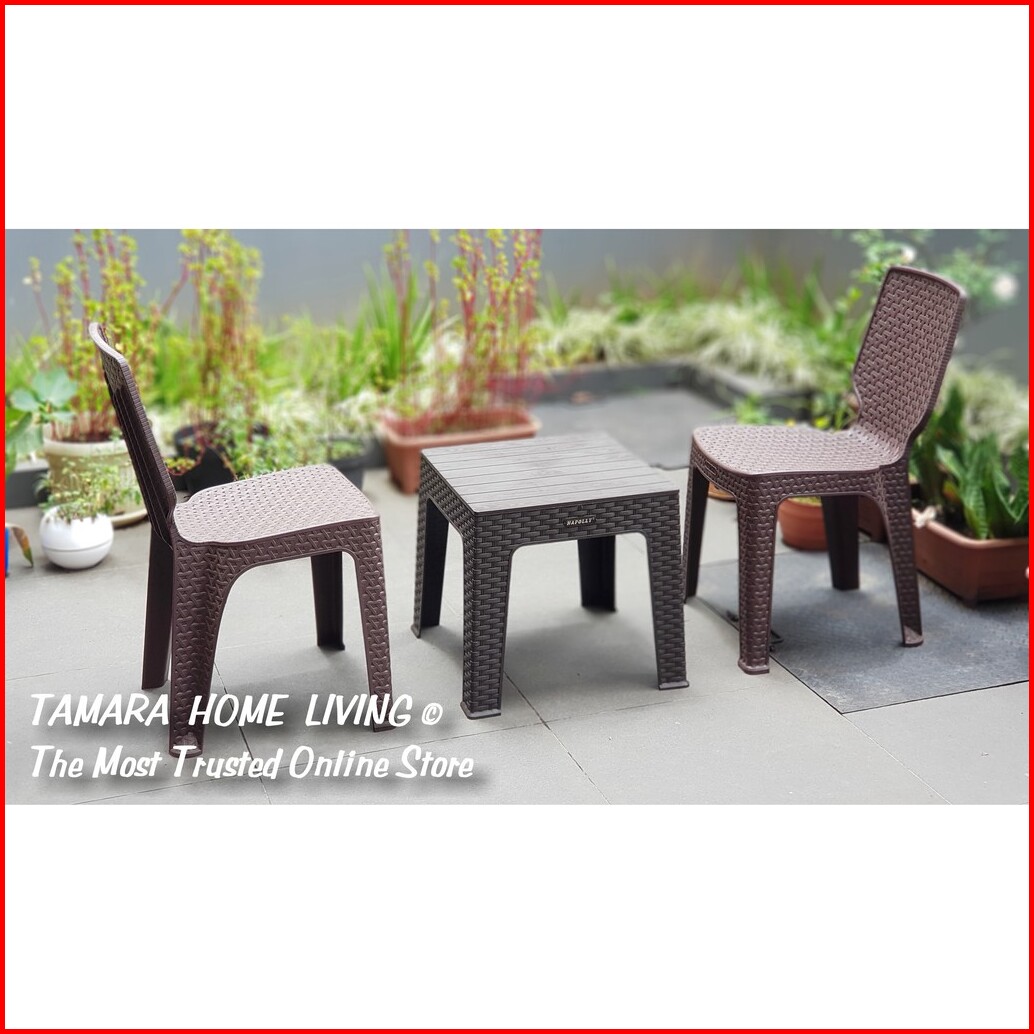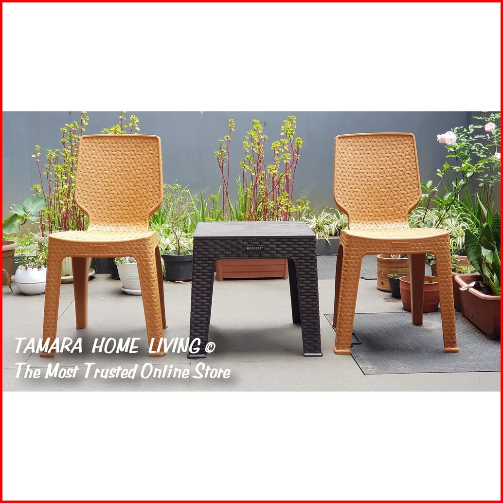 Paket A1 Kursi Plastik Meja Taman Minimalis Motif Anyaman Rotan Jati - 1 Set 2 Kursi 1 Meja