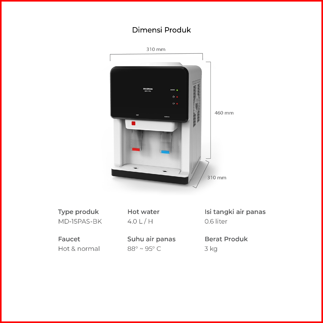 Maspion Dispenser Air Portabel Hot Normal Md-15 Pas Garansi Resmi
