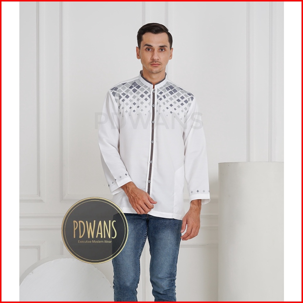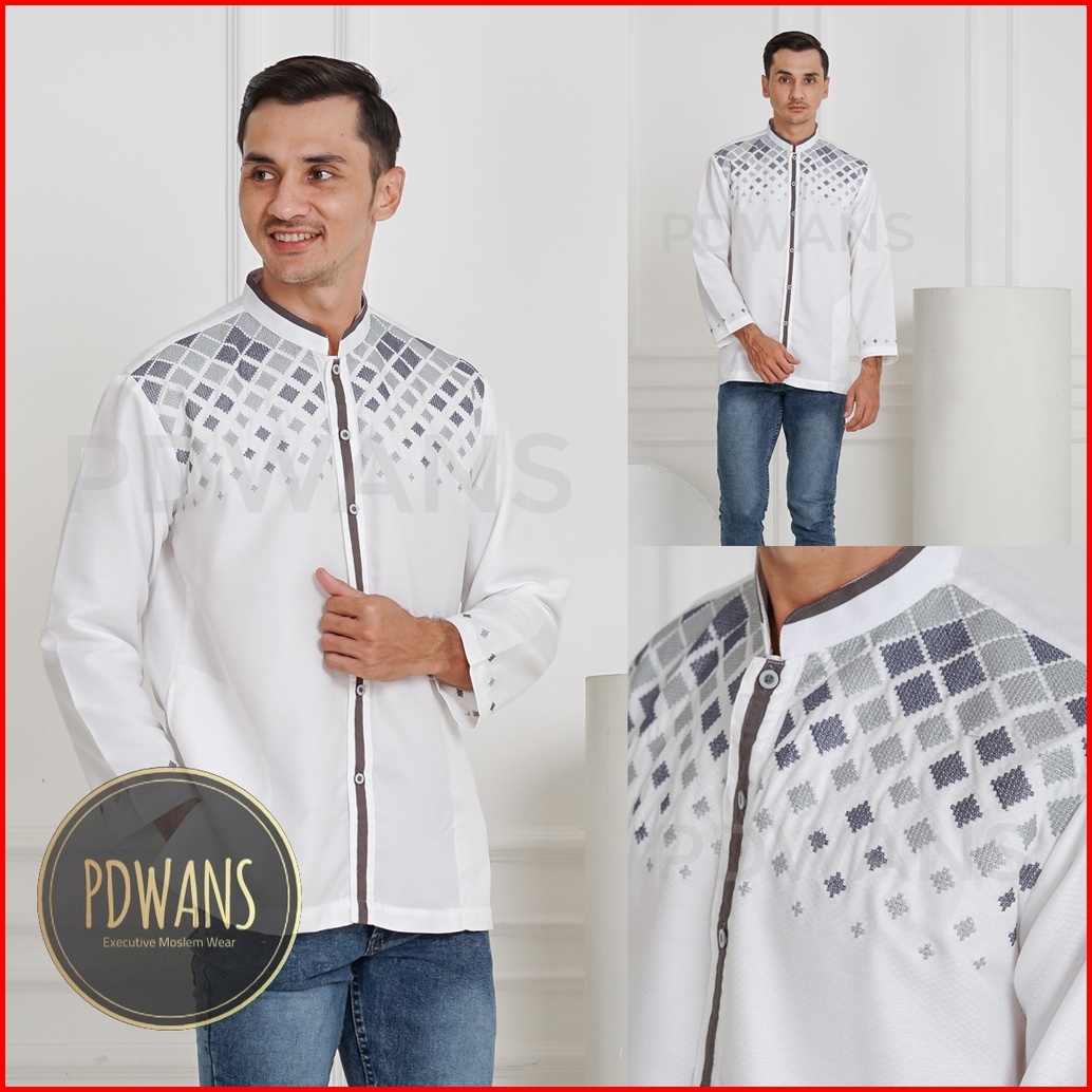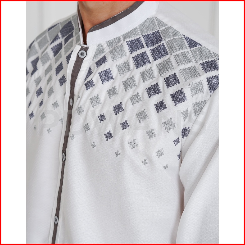 Baju Koko Lengan Panjang Putih Tulang Kemeja Koko Muslim Bordir M L Xl Pdwans - Sepjg12