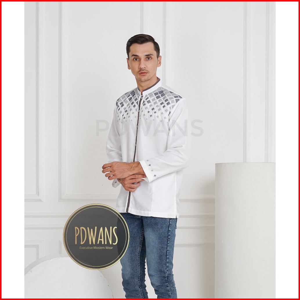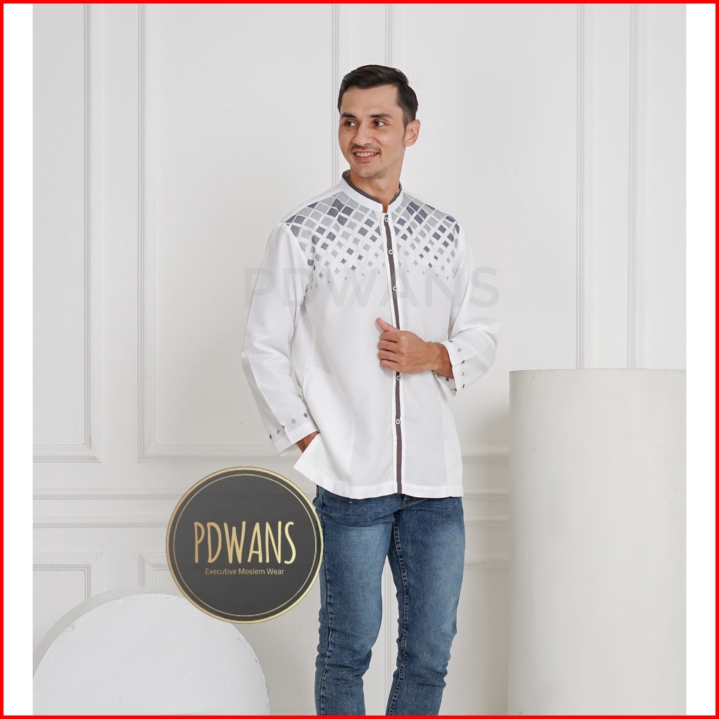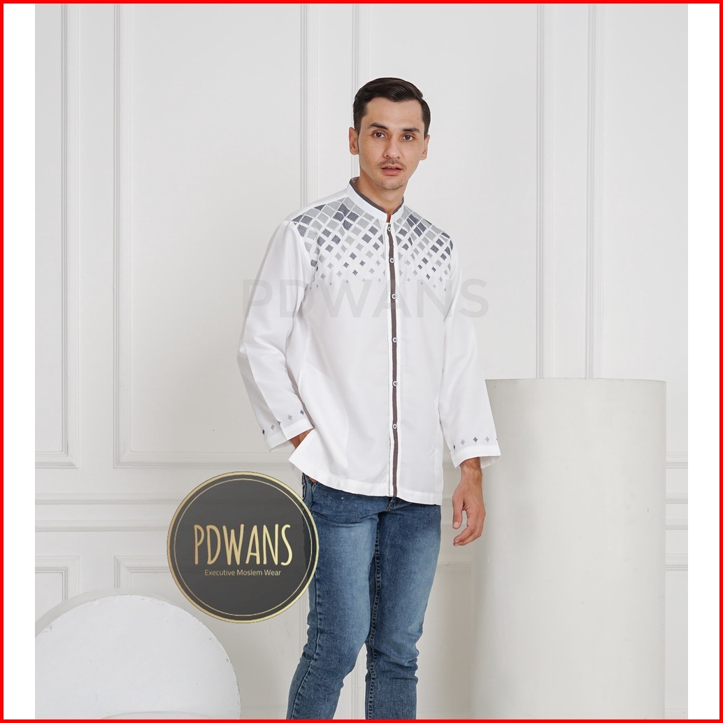 Baju Koko Lengan Panjang Putih Tulang Kemeja Koko Muslim Bordir M L Xl Pdwans - Sepjg12