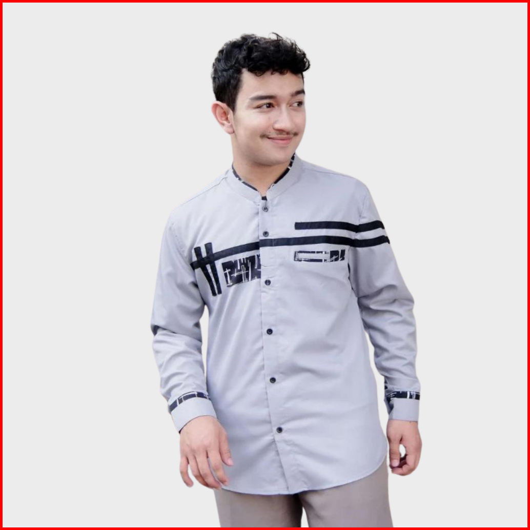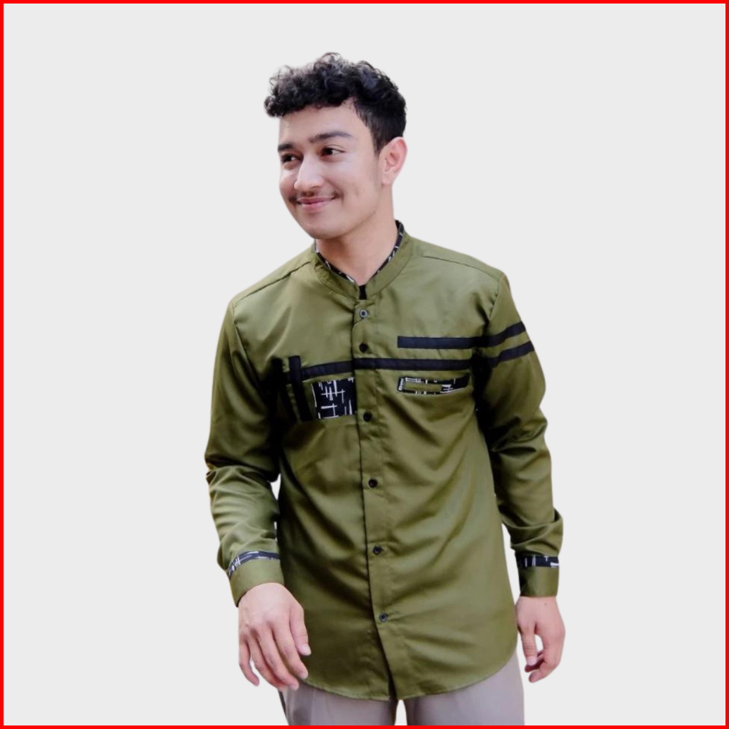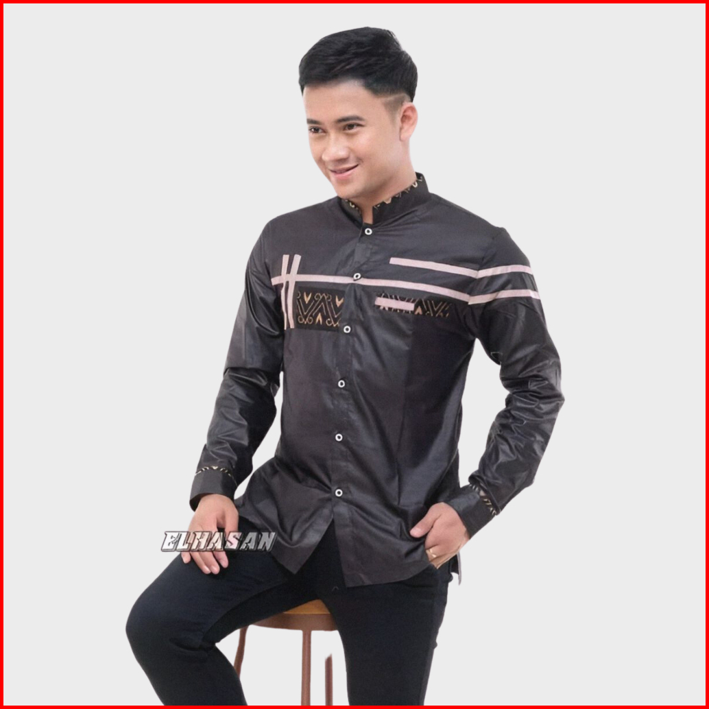 Baju Koko Pria Lengan Panjang Warna Coklat Kombinasi Batik Motif Zoled