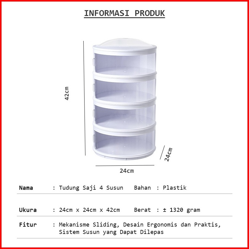 Baritoindo Tudung Saji Plastik Makanan 4 Susun Anti Serangga Anti Debu - Rh-6110-3 Rh-6110-4