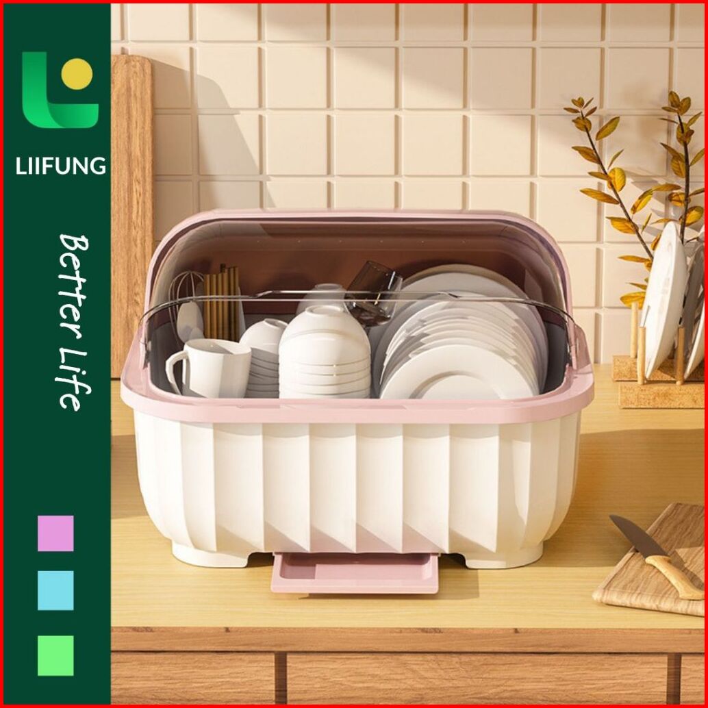 Liifung Rak Piring Dengan Tirisan Air D81 Tempat Penyimpanan Alat Makan Mangkuk Sendok Sumpit Garpu