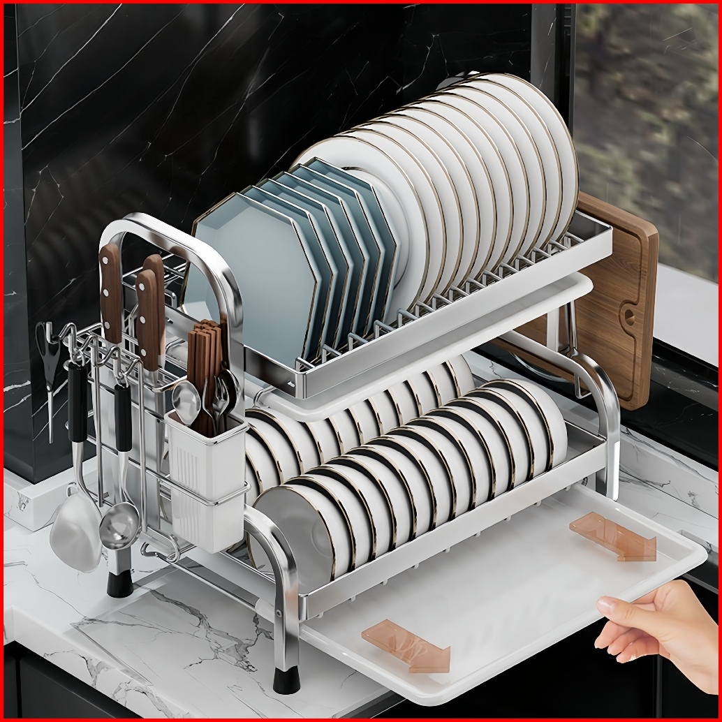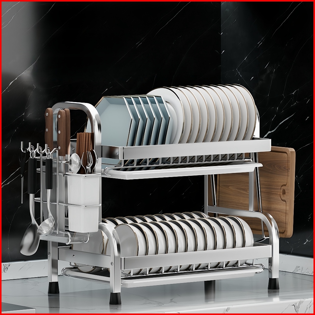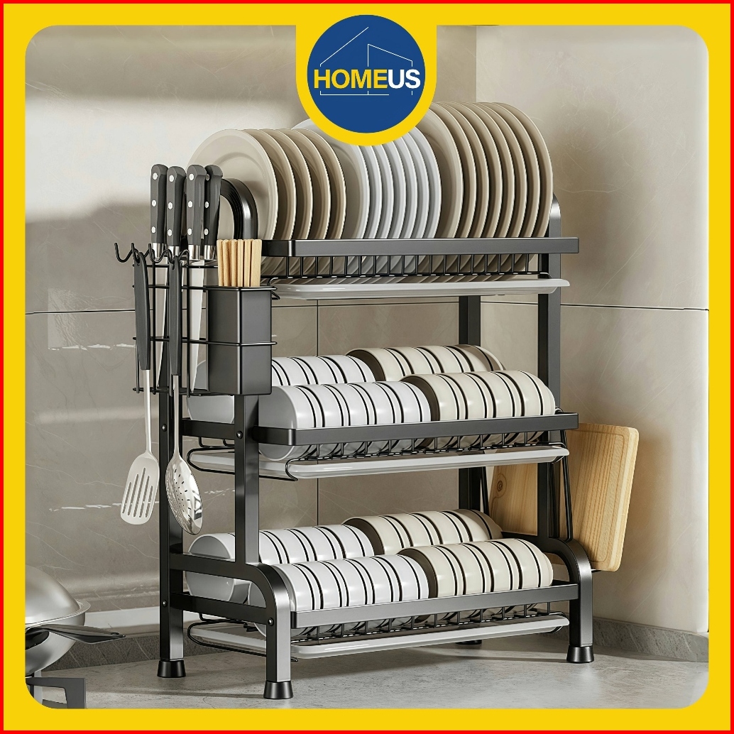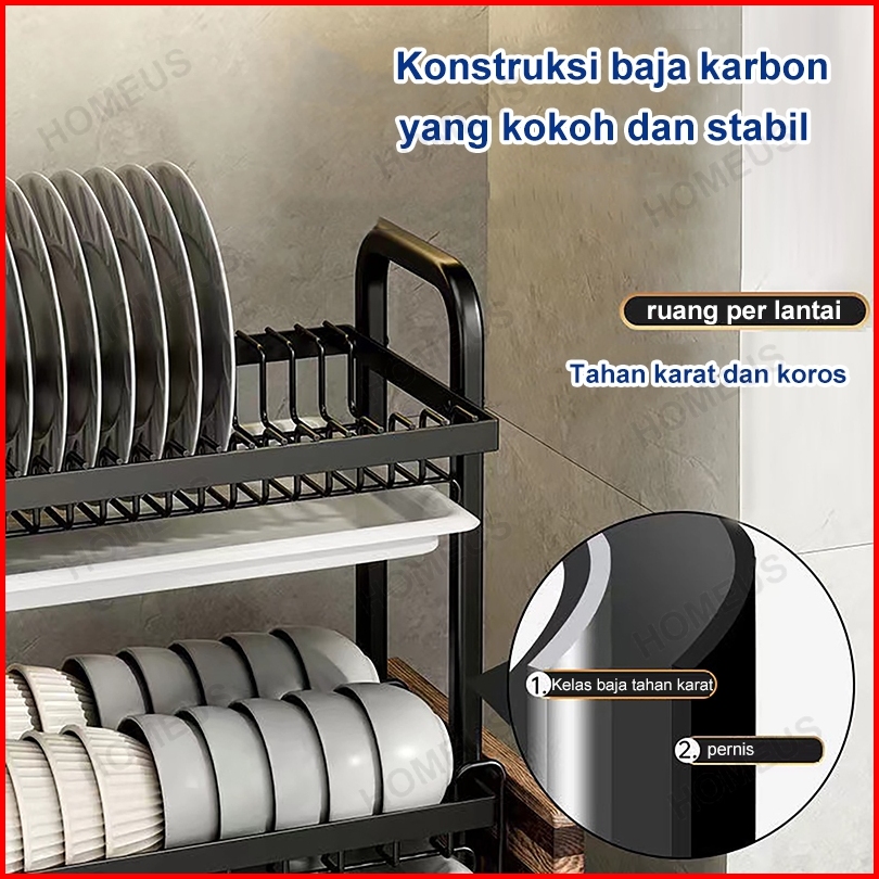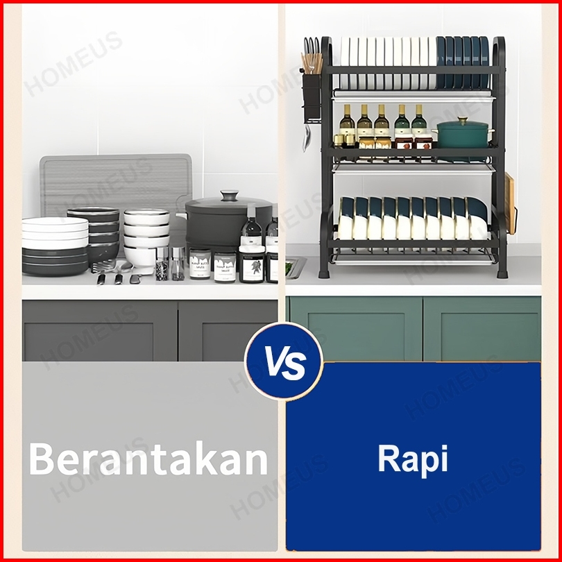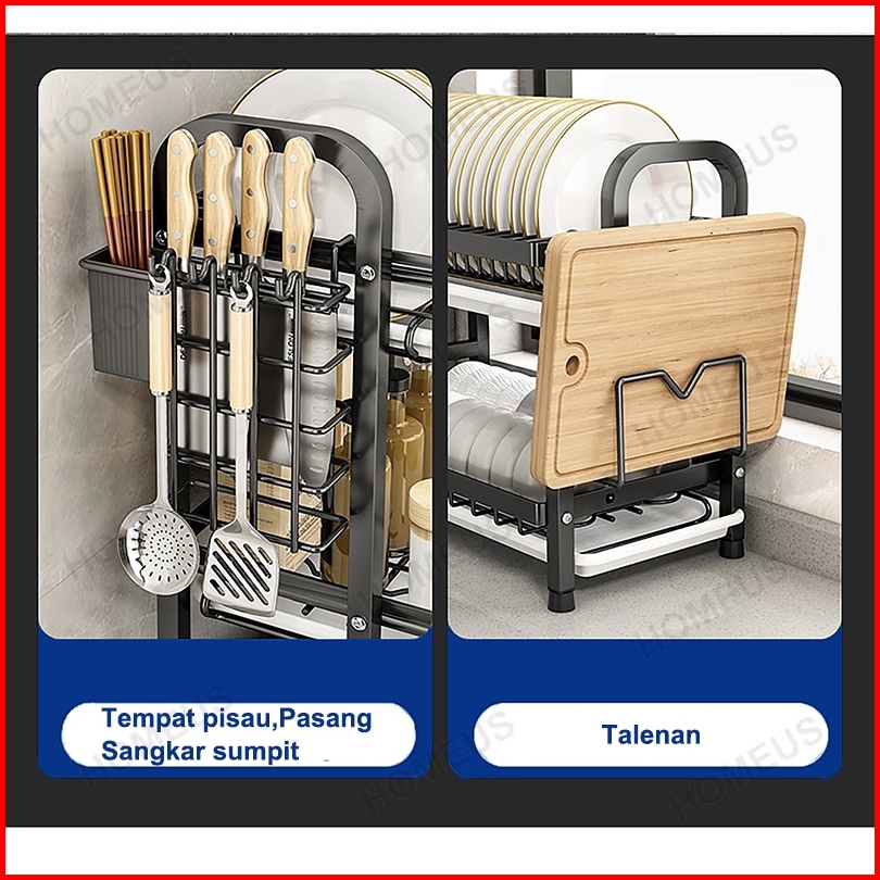 Homeus Rak Mangkok Piring Penyimpanan Besi Tahan Karat Dapur Stainless Rack Organizer