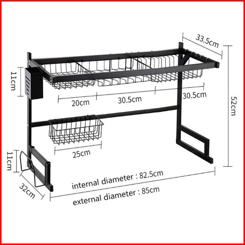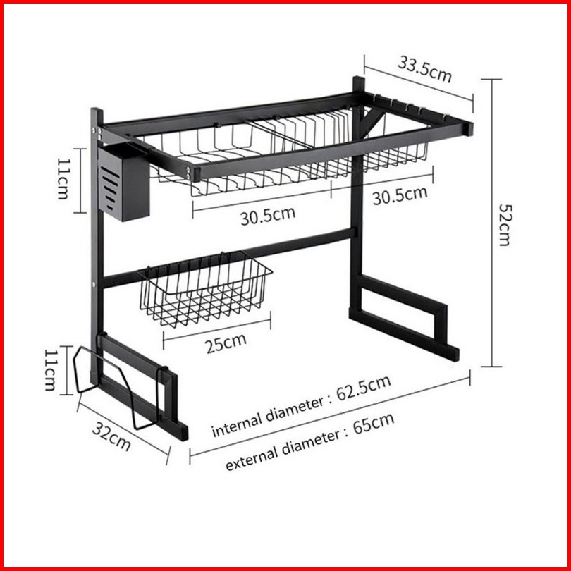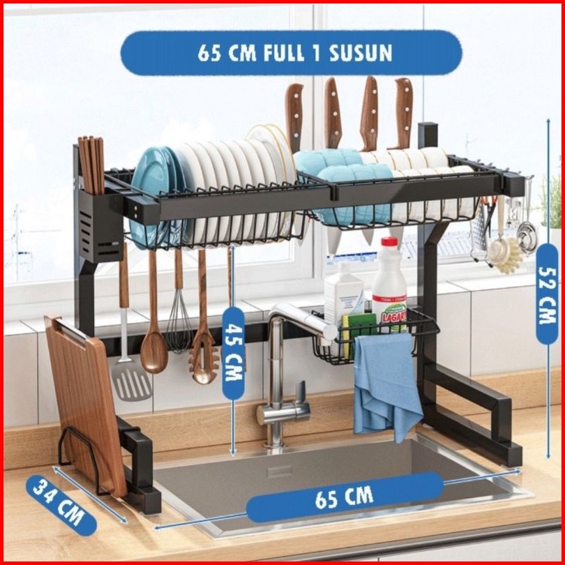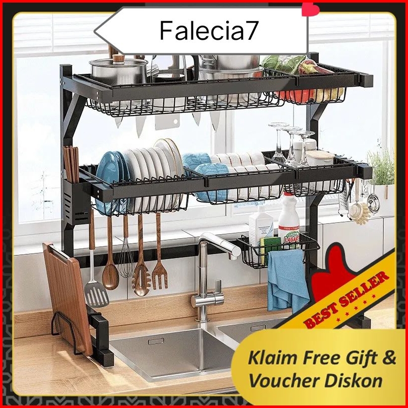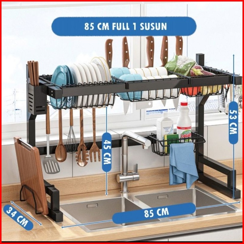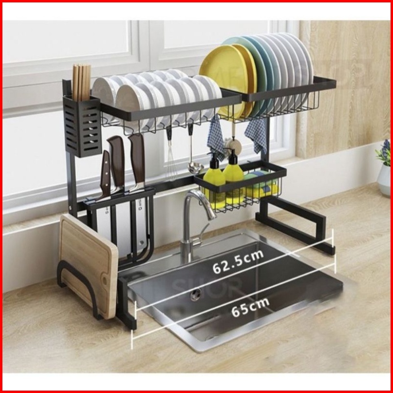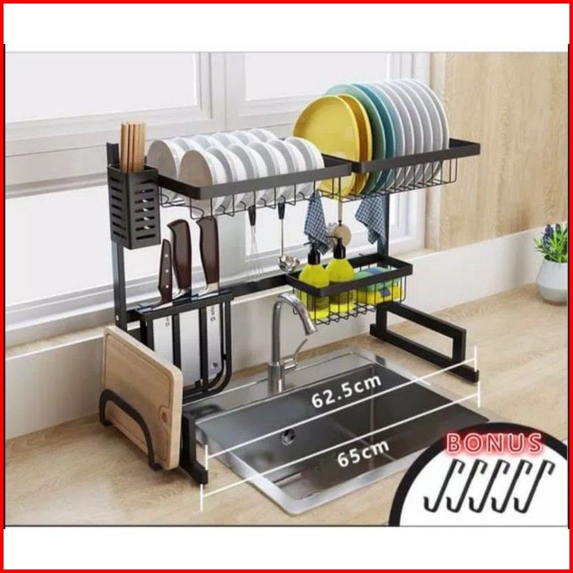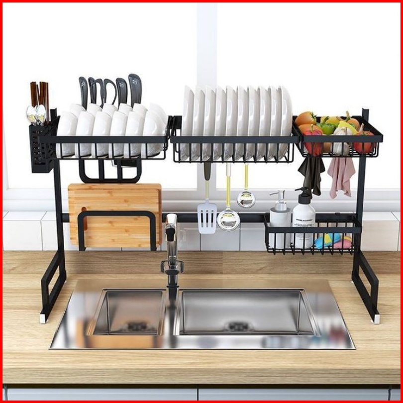 Rak Piring Dapur Stainless Steel Hitam Wastafel Rak Piring Besar Dapur Tempat Piring Gantung