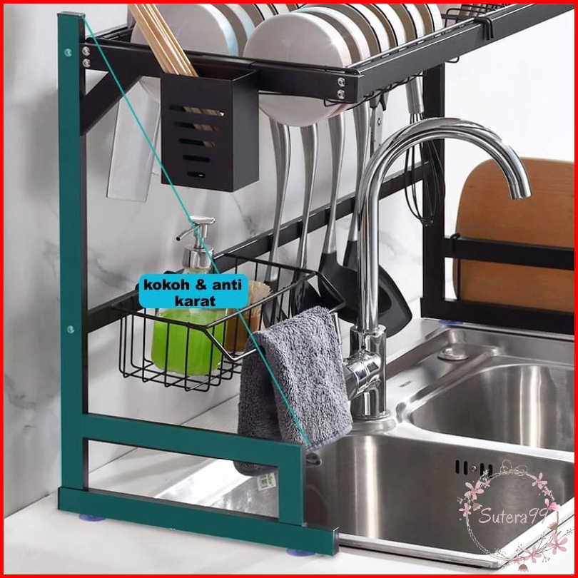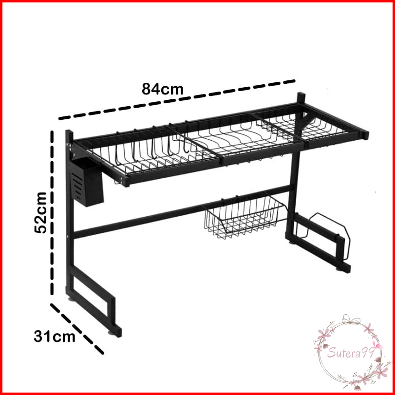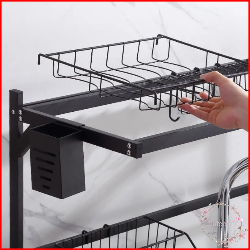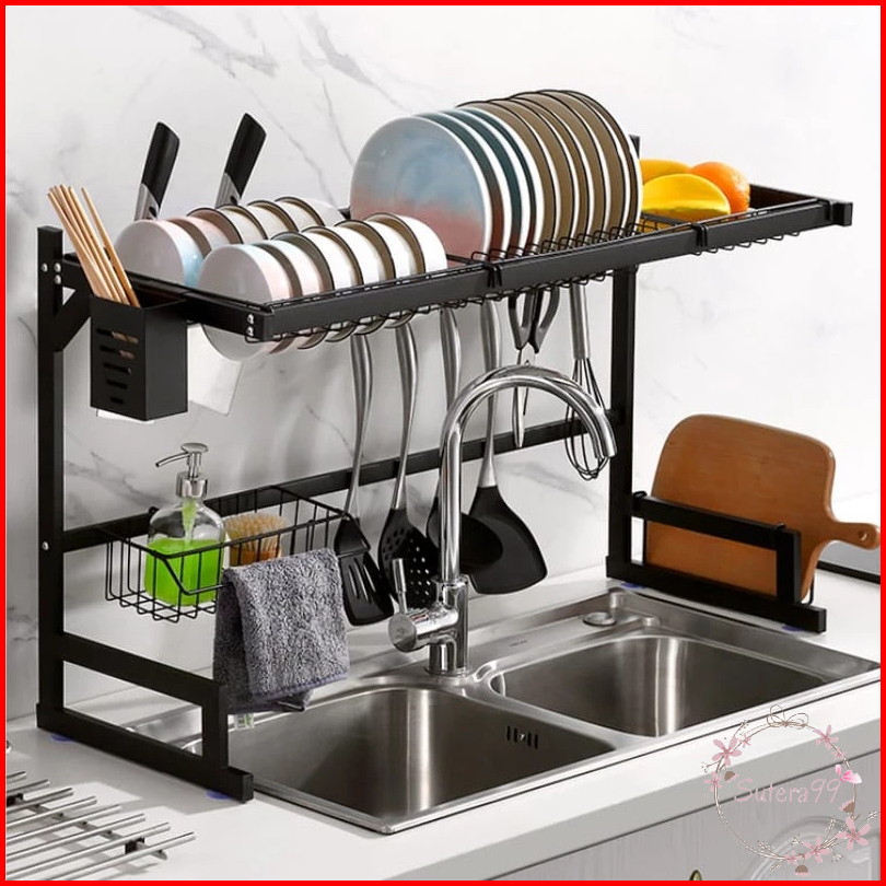 Rak Murah Rak Piring Wastafel Stainless Steel Hitam Peralatan Dapur Kokoh Kuat Pengering Piring Sutera99